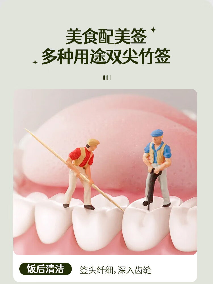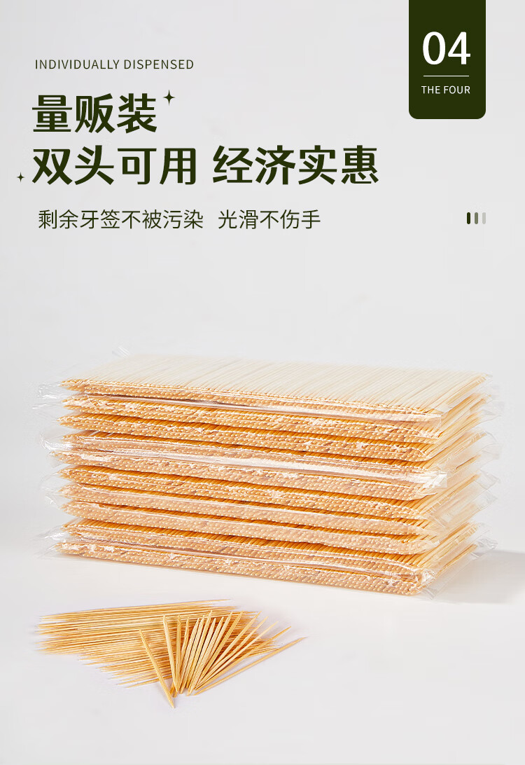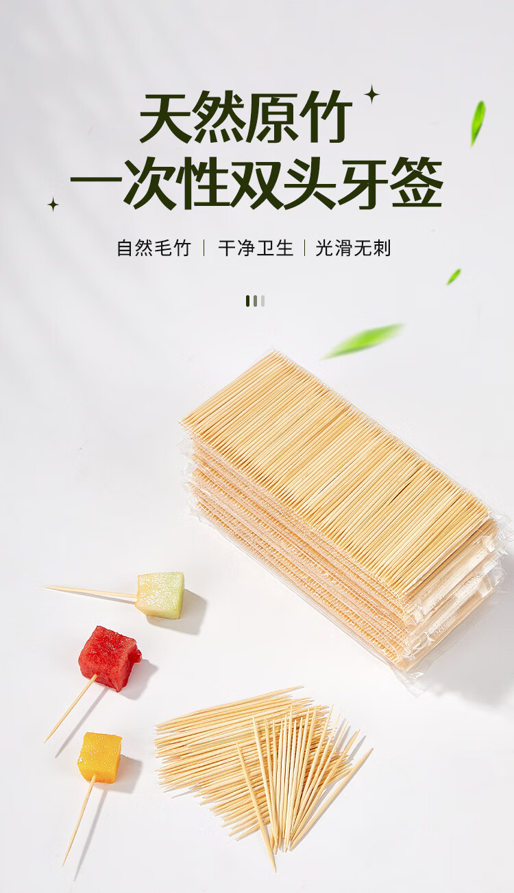艾尚拉 一次性双头竹牙签 YQ1KG 65*2mm 约7500支 1件