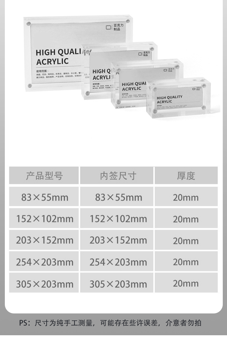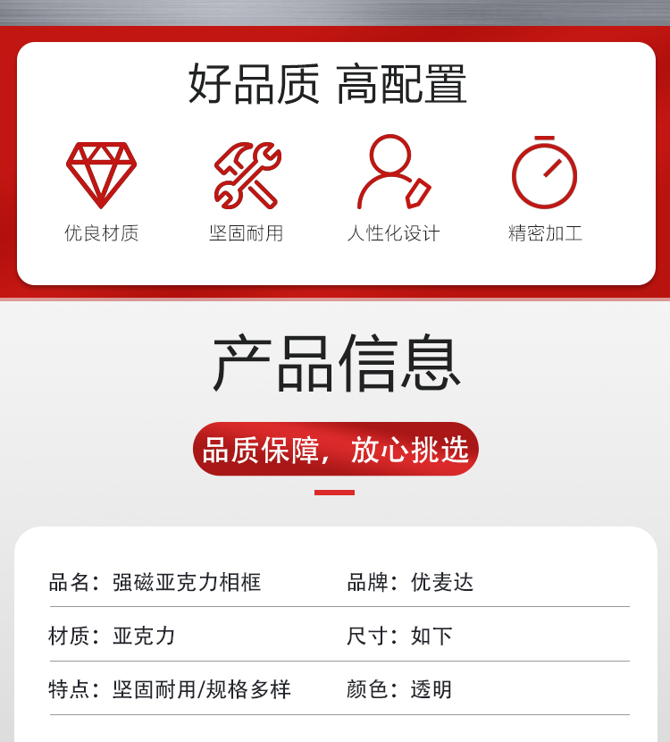 优麦达 强磁亚克力板相框 Y5357 203*152mm 1个