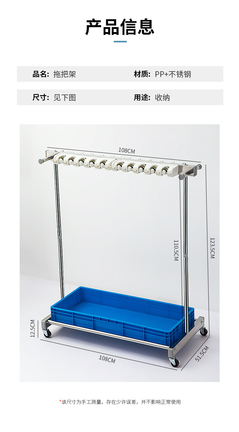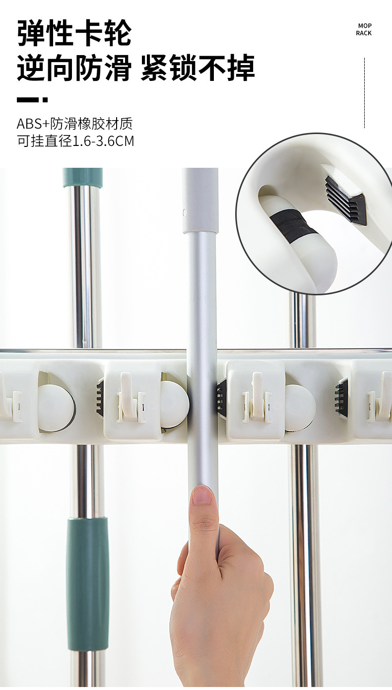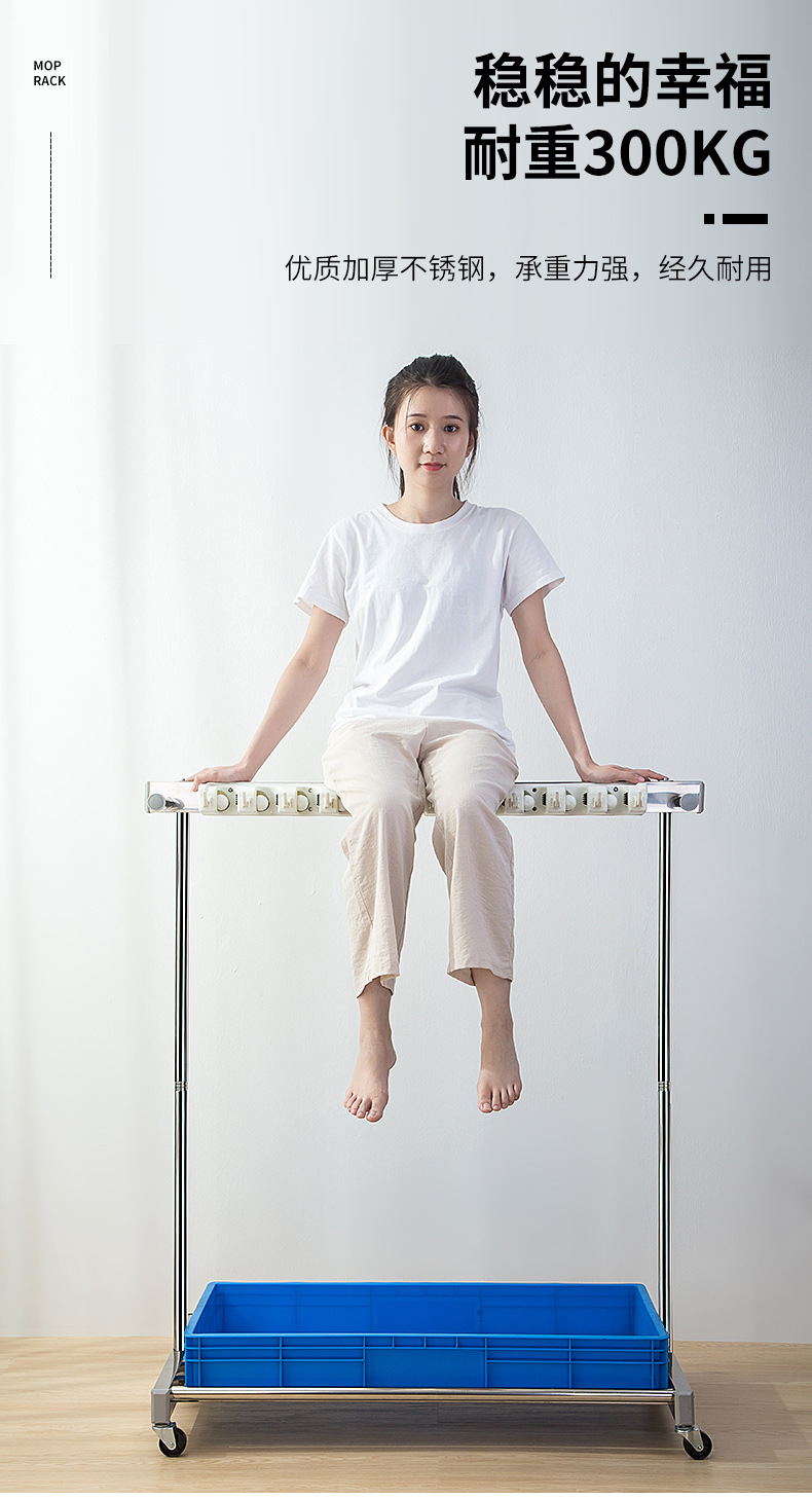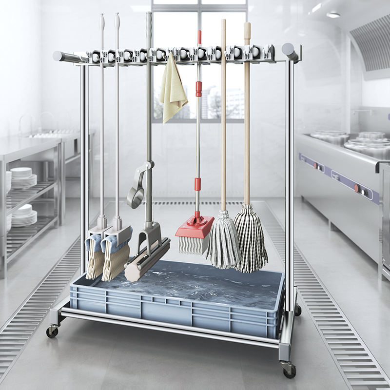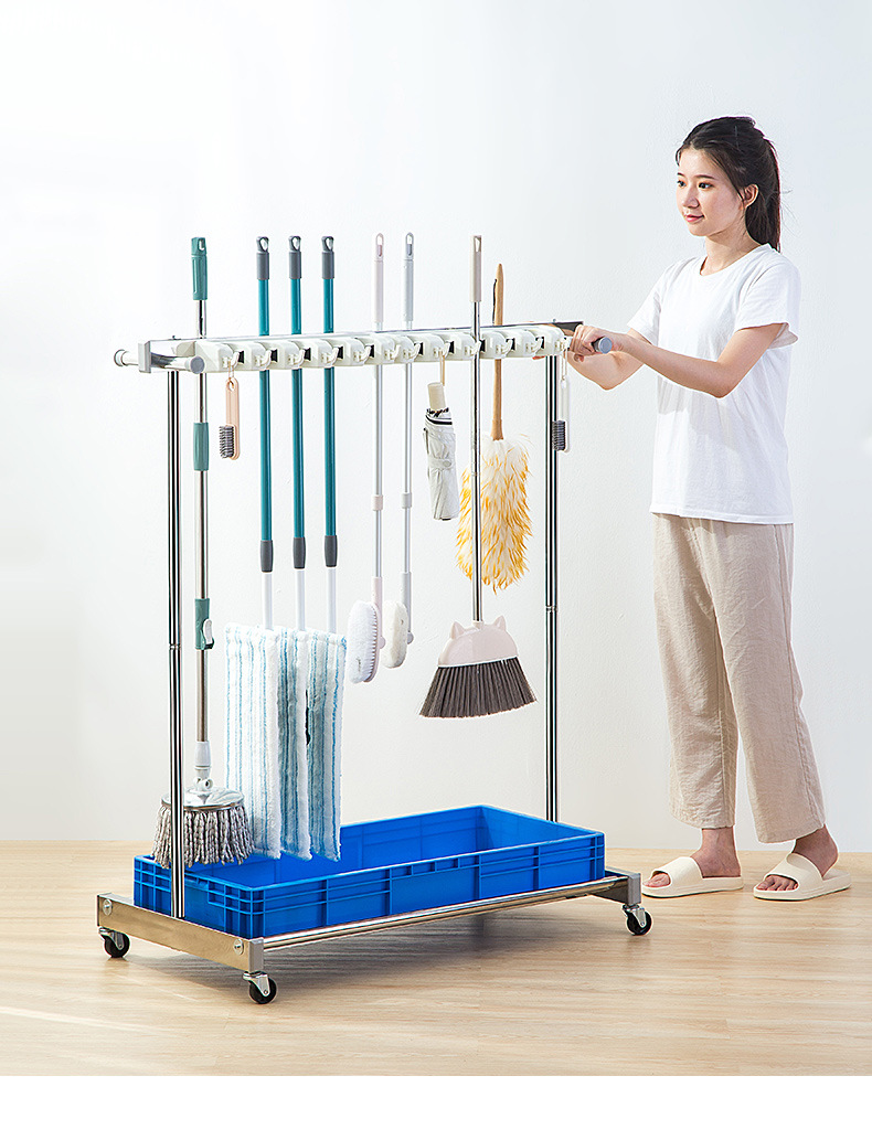 莱洁 不锈钢落地式移动拖把架 灰色豪华款-双排20拖48钩带扶手 1个