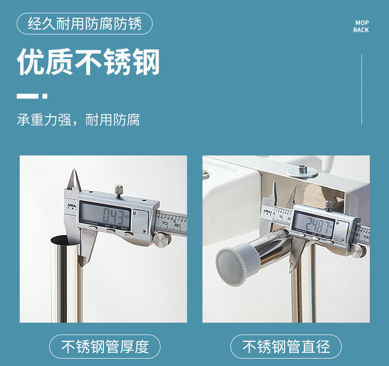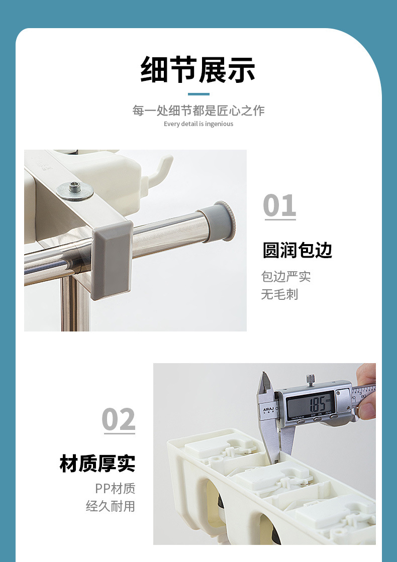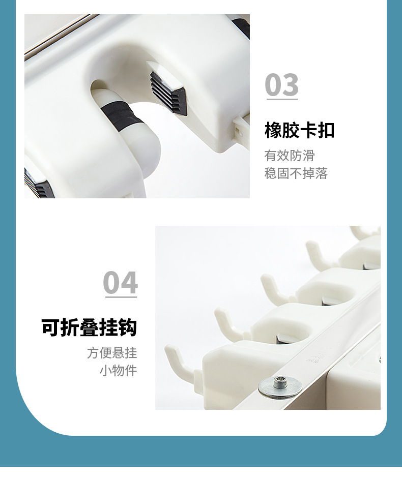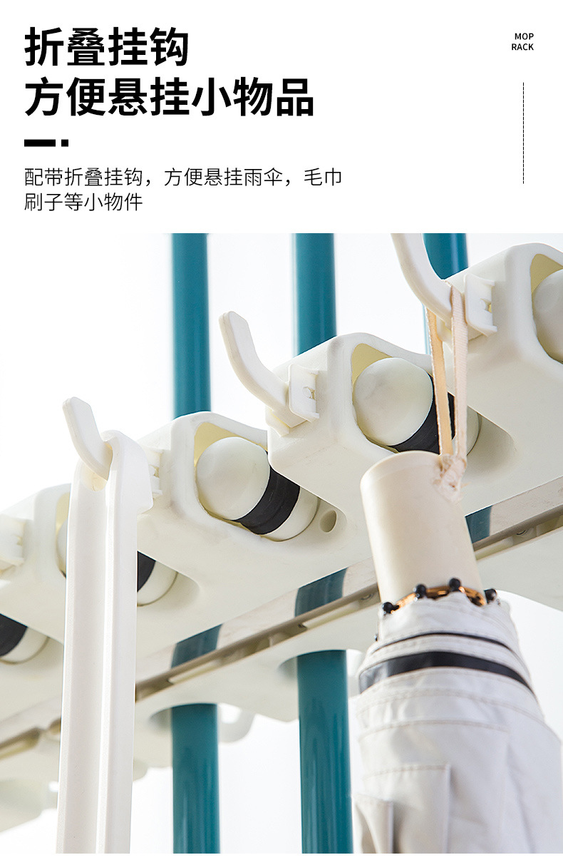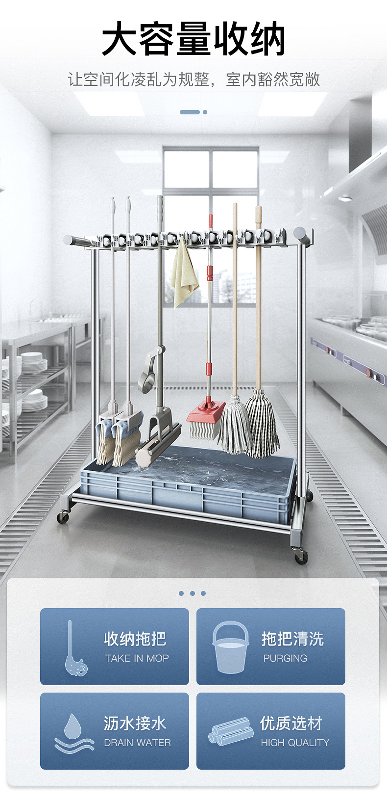 莱洁 不锈钢落地式移动拖把架 灰色豪华款-双排20拖48钩带扶手 1个