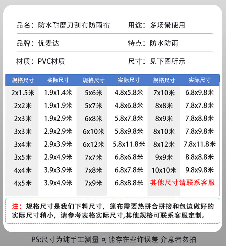 优麦达 防水耐磨刀刮布防雨布 Y6059 1.8m*1.8m 1块