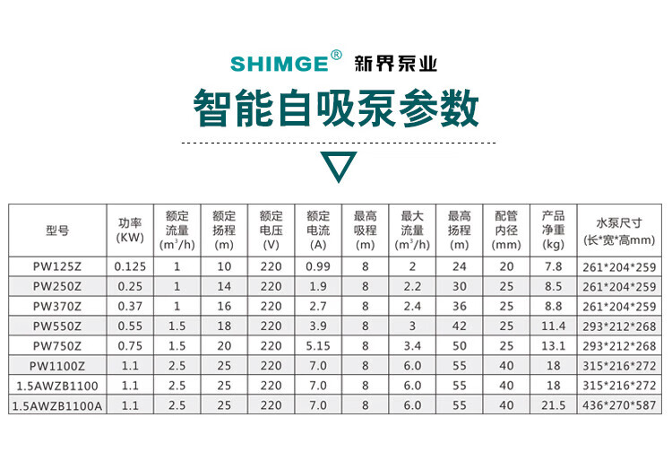 新界泵业 智能数显自吸泵 PW550 全自动款 550W 1个