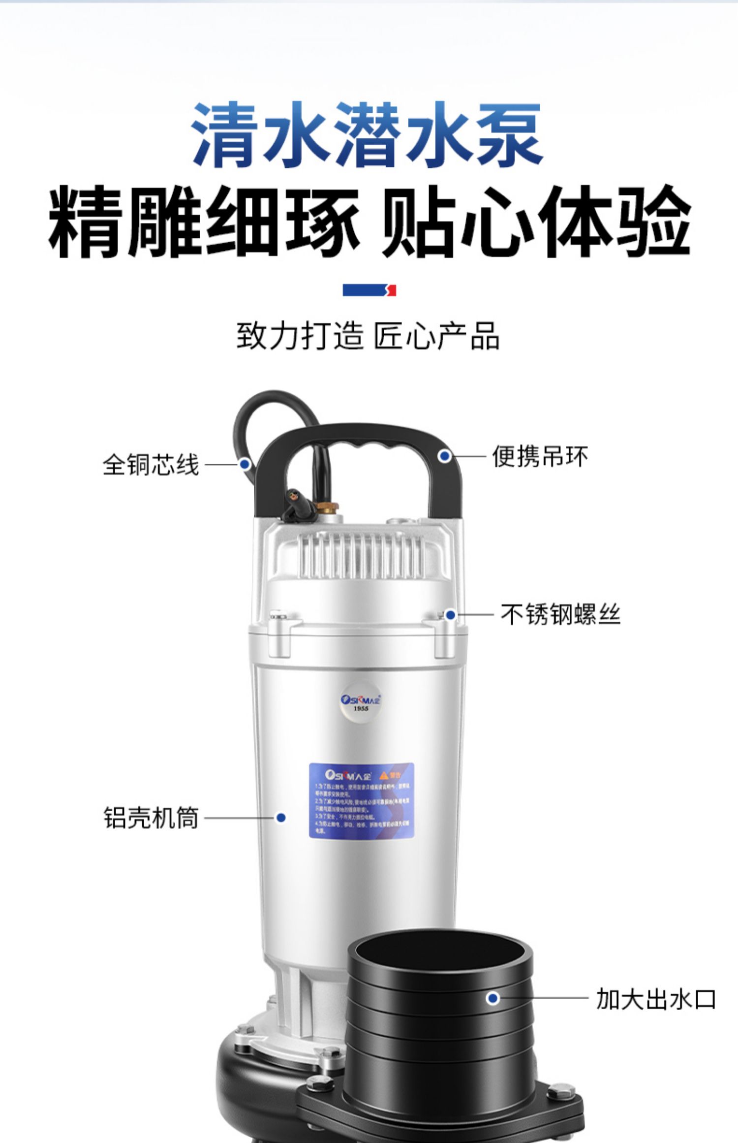 SRM人民水泵 小型潜水电泵 QDX10-12-0.55A 220V 1台