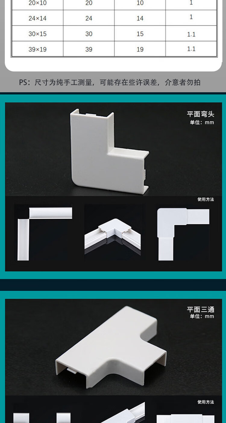 优麦达 PVC线槽配件 YJN763 39*19mm 平面弯头 10个 1件