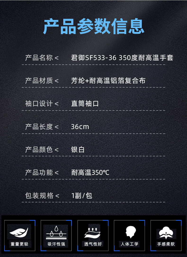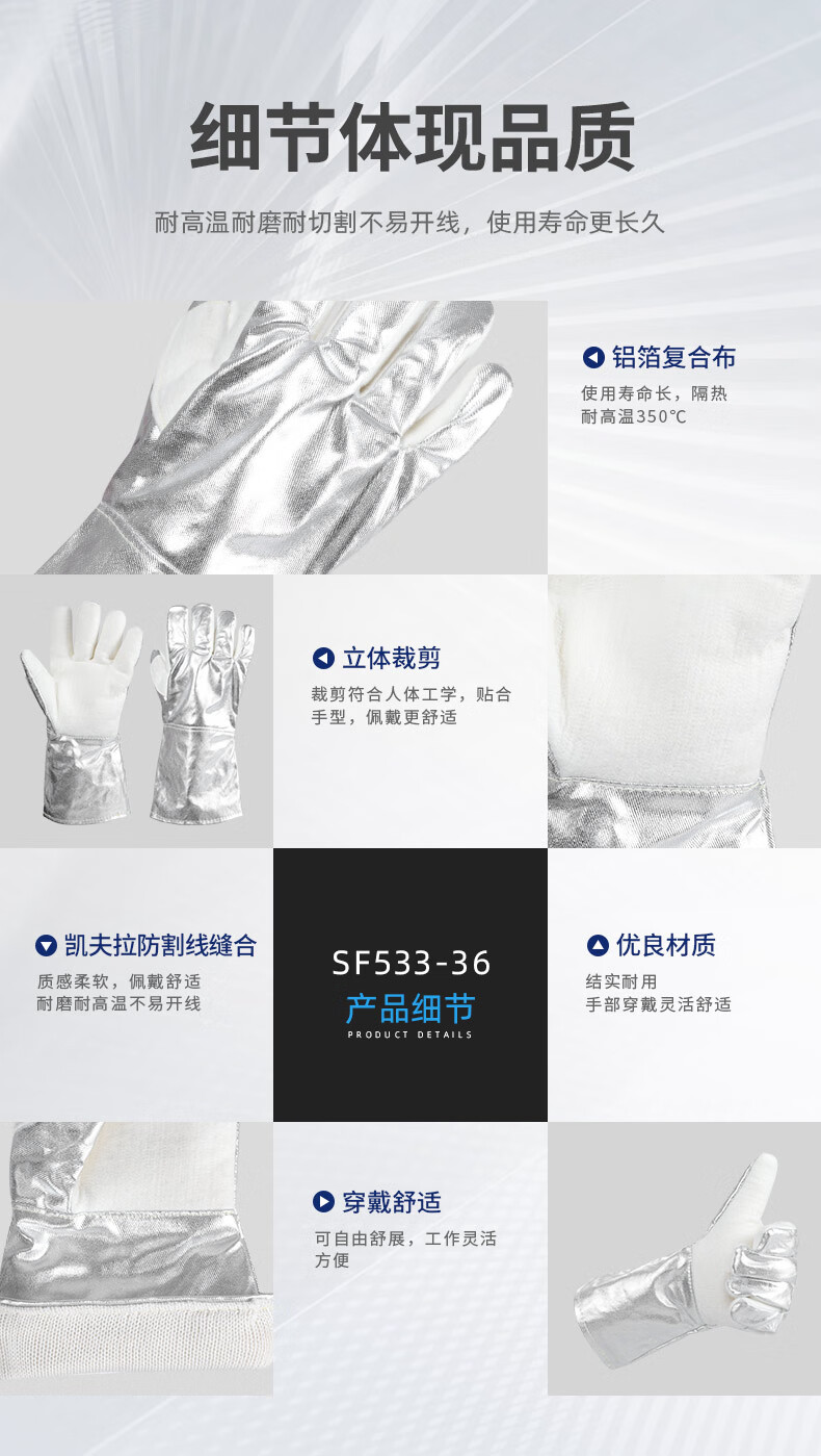 君御 耐高温手套 SF533-36 白银色 350度 1双