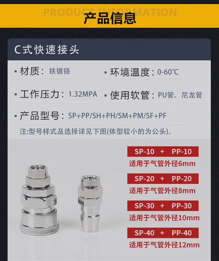 稳斯坦 C式快速接头 WSX276 公头PM20(外牙2分) 1个