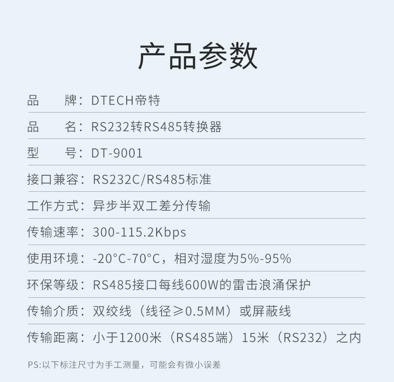 帝特 RS232转RS485转换器 DT-9001 300-115.2Kbps 1个
