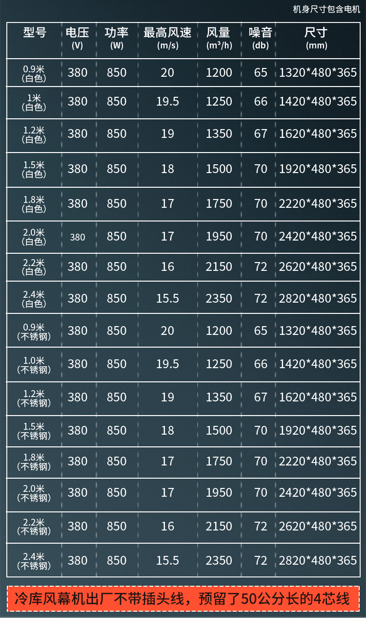 米风 冷库专用风幕机 FM-2524LK-B 不锈钢 2.4米双涡轮380V超强风 1台