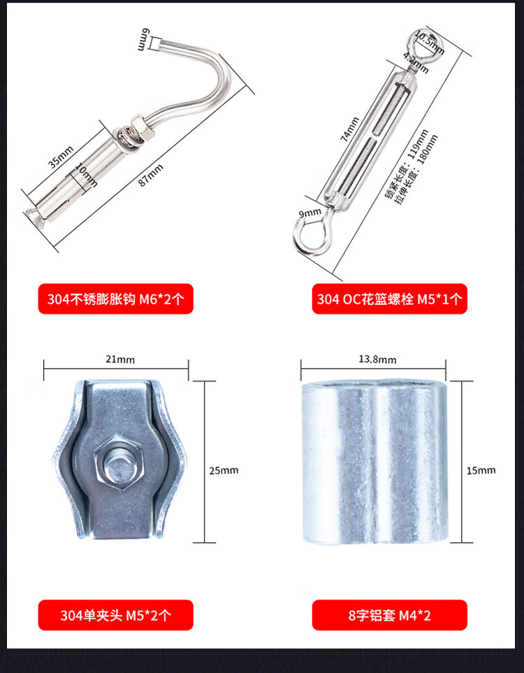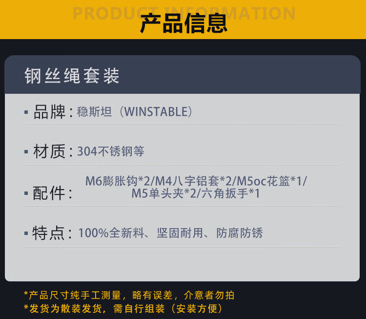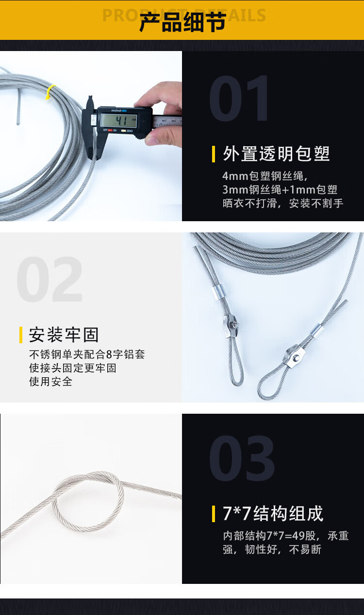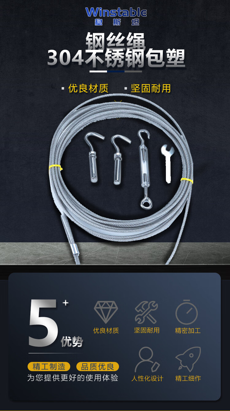 稳斯坦 包塑钢丝绳 WY0126 304不锈钢 4mm 6M 1套