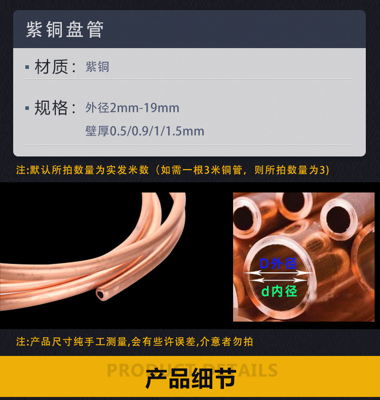 稳斯坦 紫铜盘管 WST1001 外径10mm 壁厚1.5mm 长1m 1根