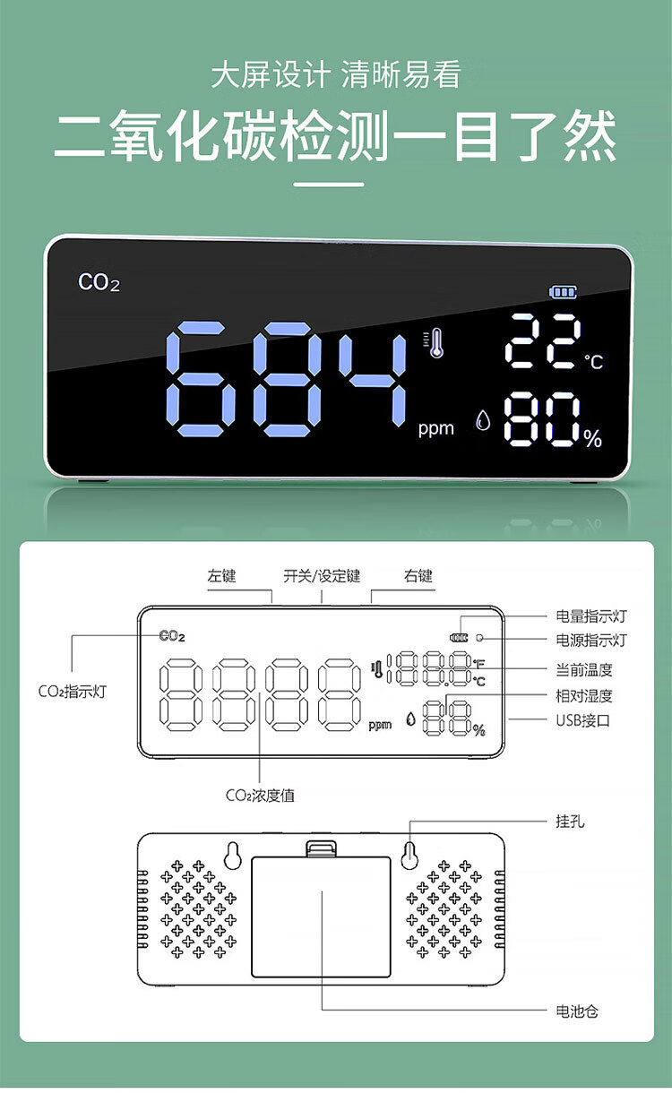 海斯迪克 温湿度计 HKCL-306 智能空气质量监测仪 1个