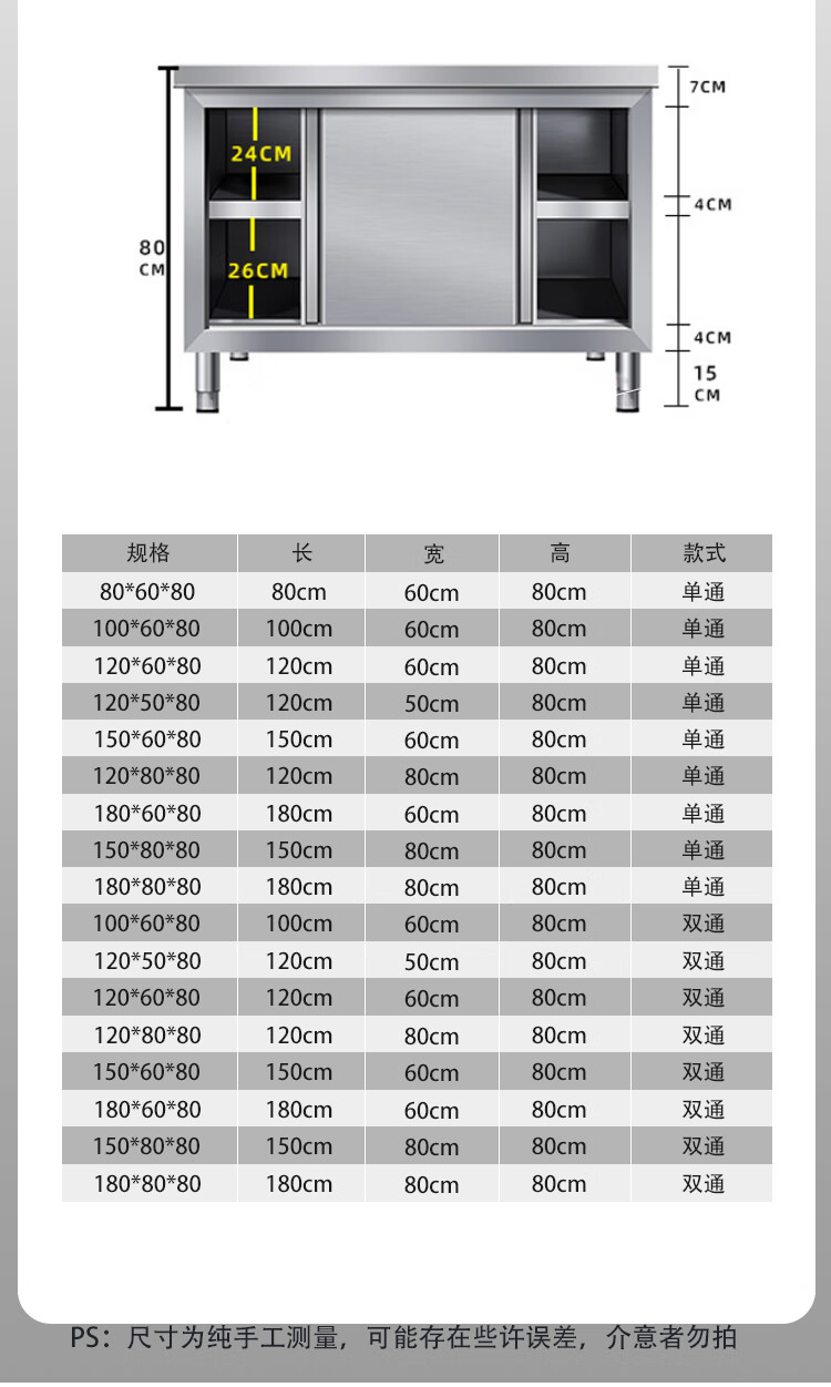 优麦达 不锈钢拉门工作台 Y6227 120*60*80 双通 1台