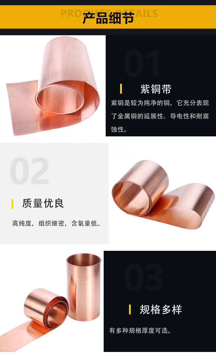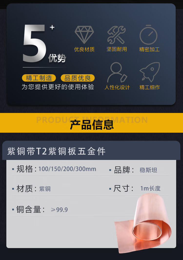 稳斯坦 紫铜片铜皮铜箔紫铜带 W475 0.01mm*100mm 1米