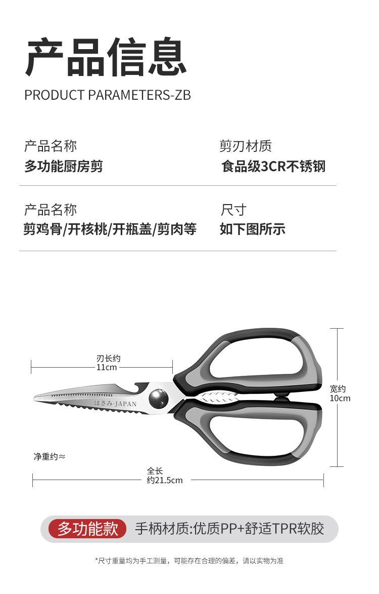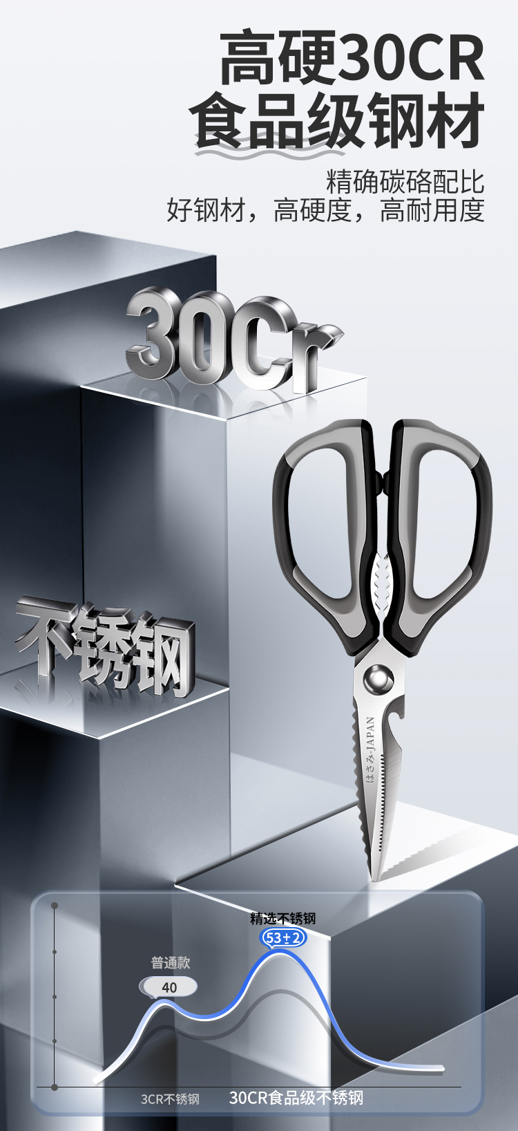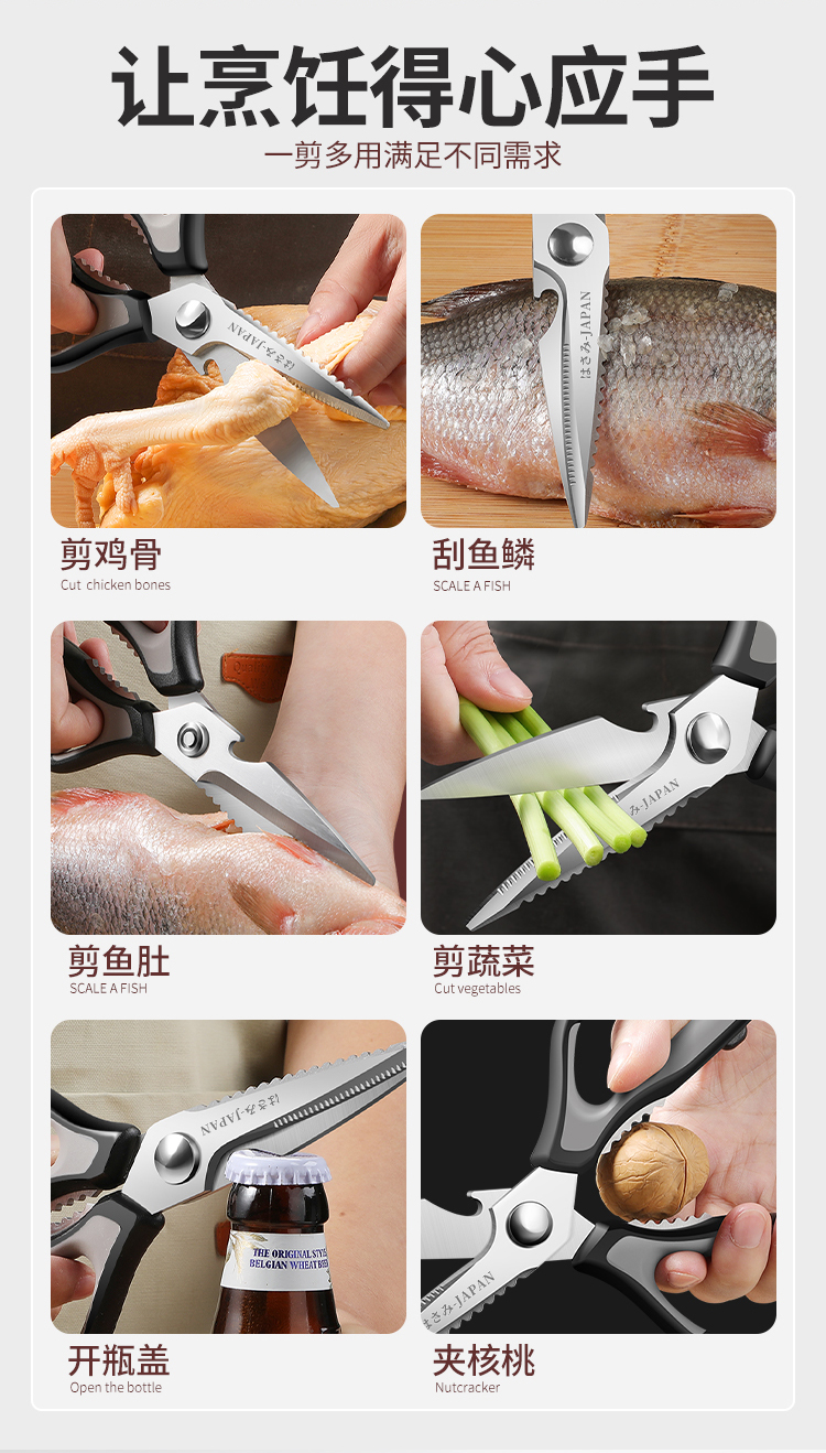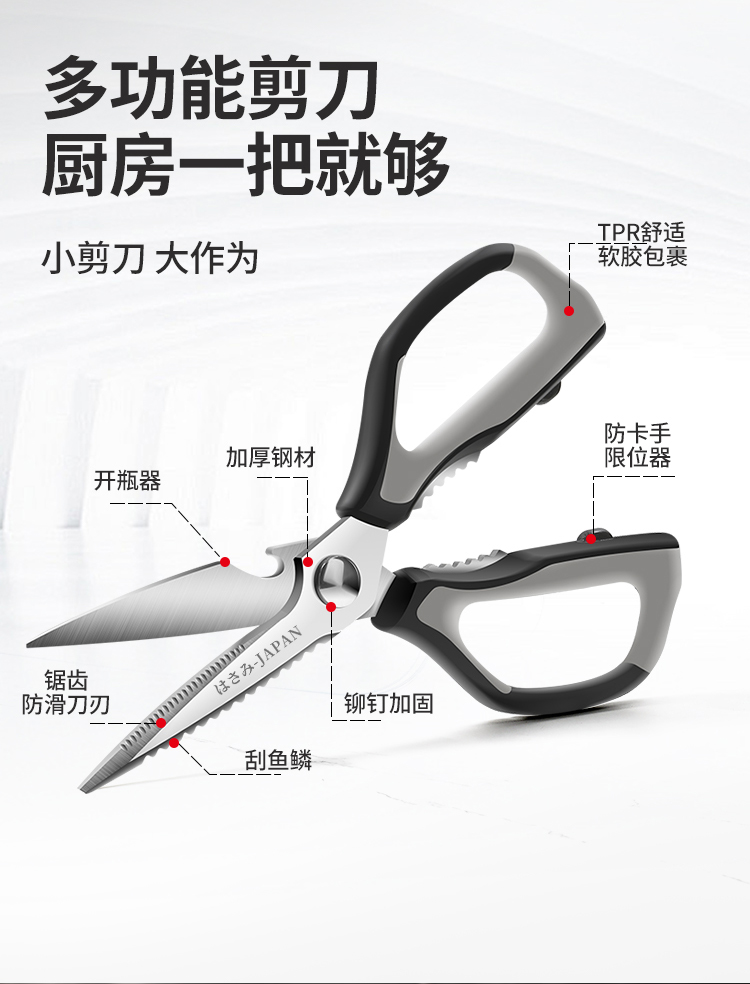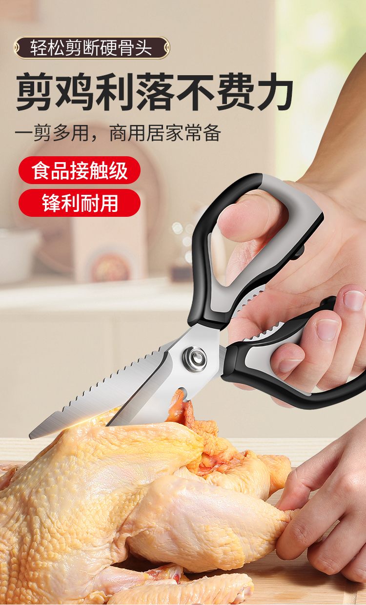 郑小厨 家用不锈钢厨房剪刀 9624Z 经典灰鸡骨剪 1个