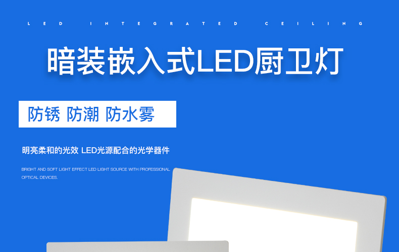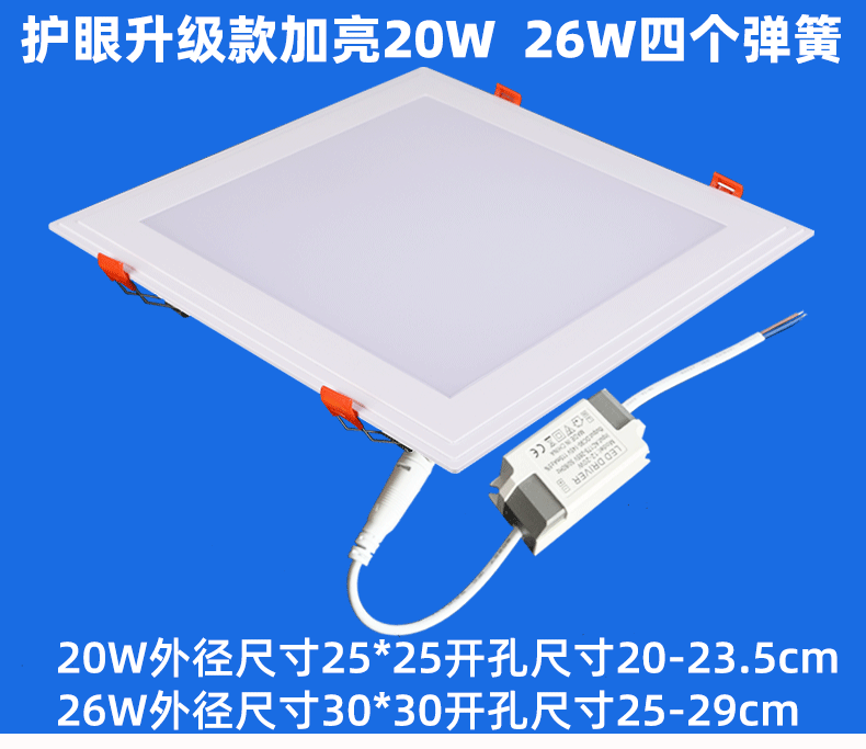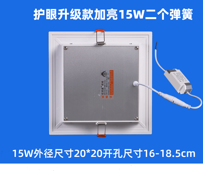 亿佰鑫 LED厨卫灯 护眼超亮款 方形老式卡扣 白光 20*20cm 15W 1个