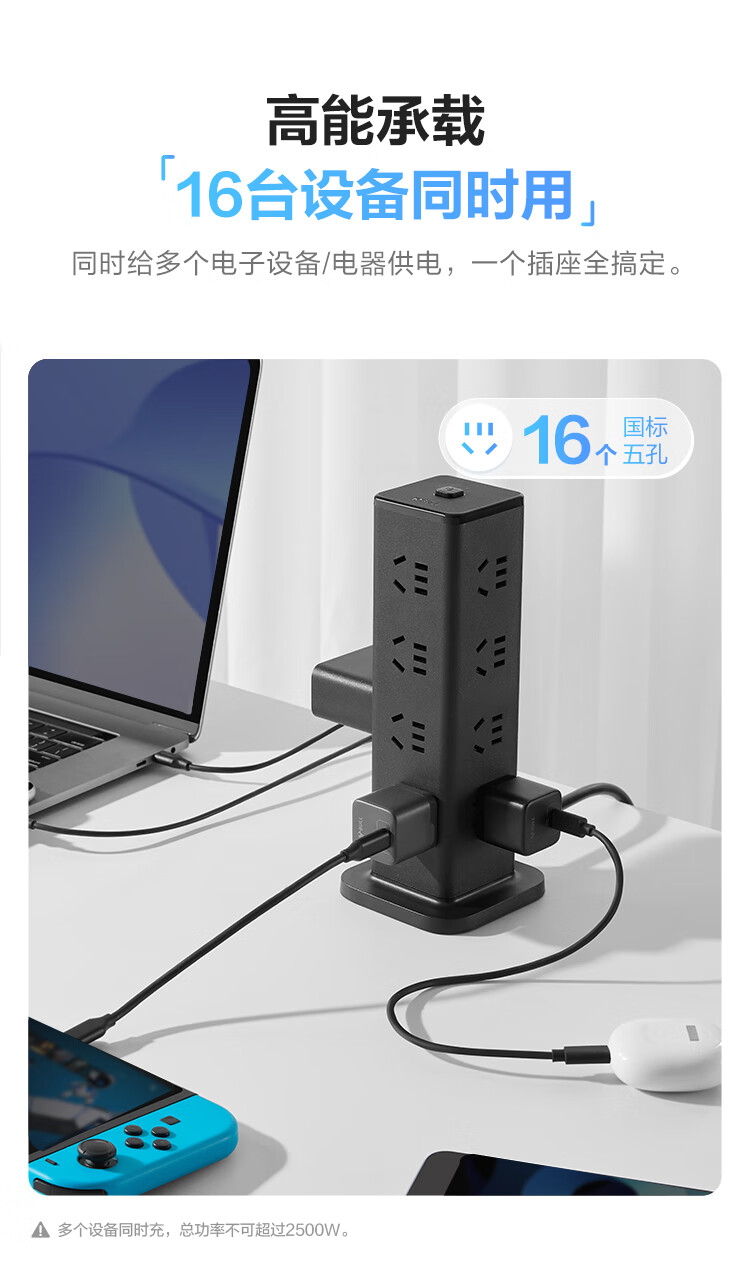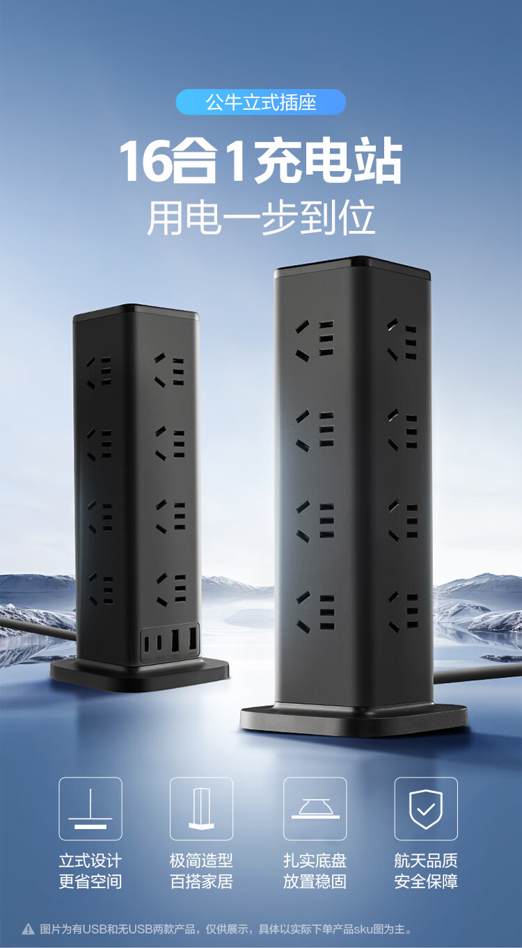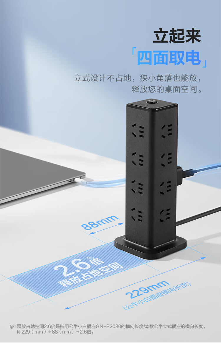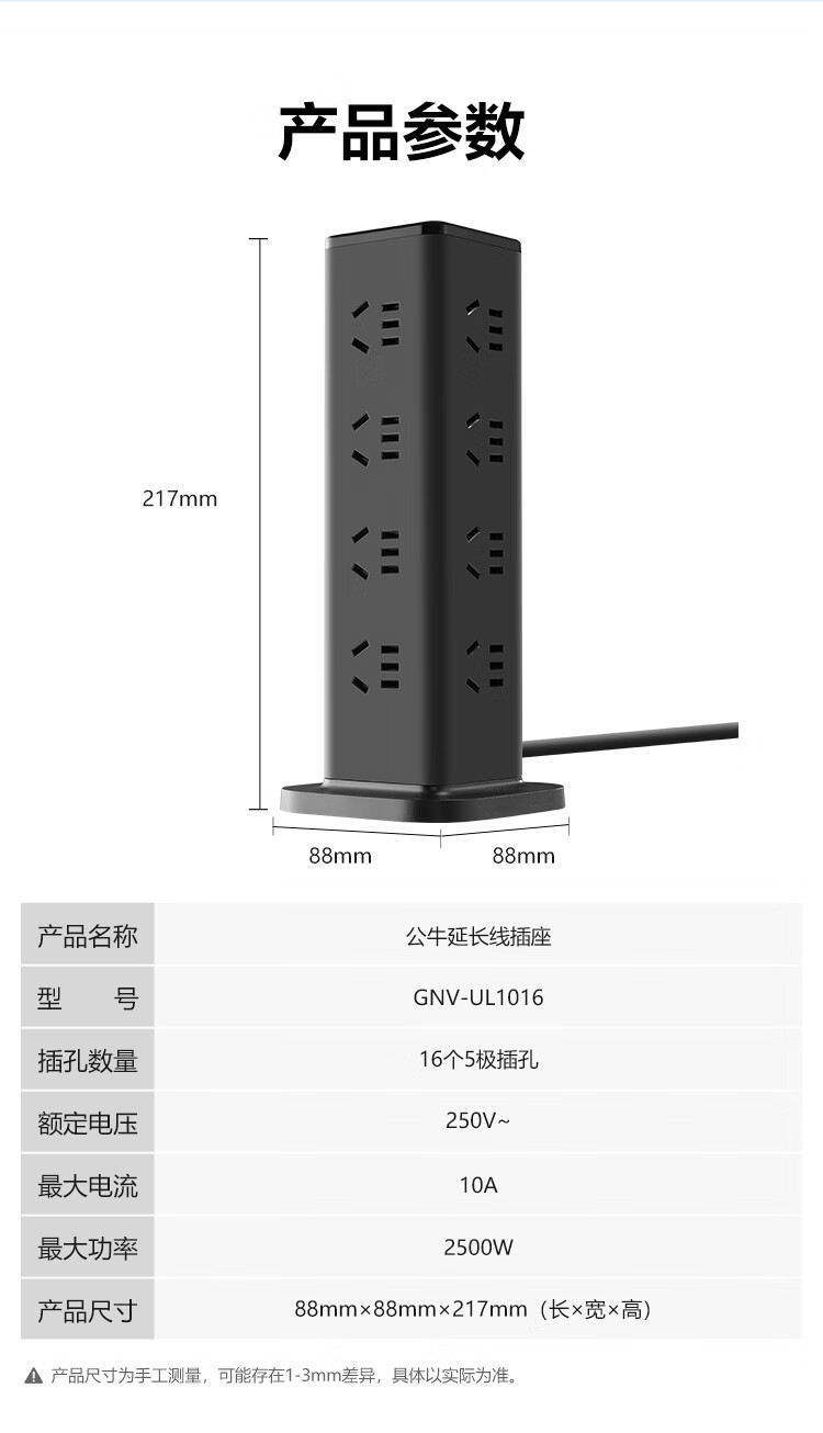 公牛 插排 GNV-U1016 黑色 1.6米 1个