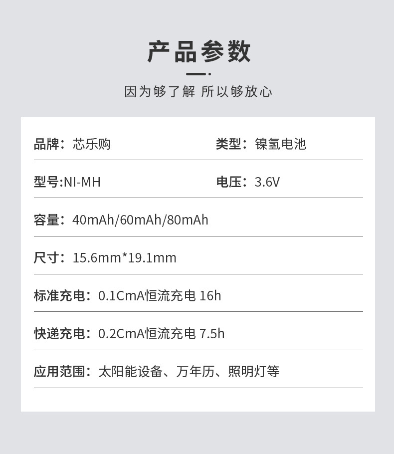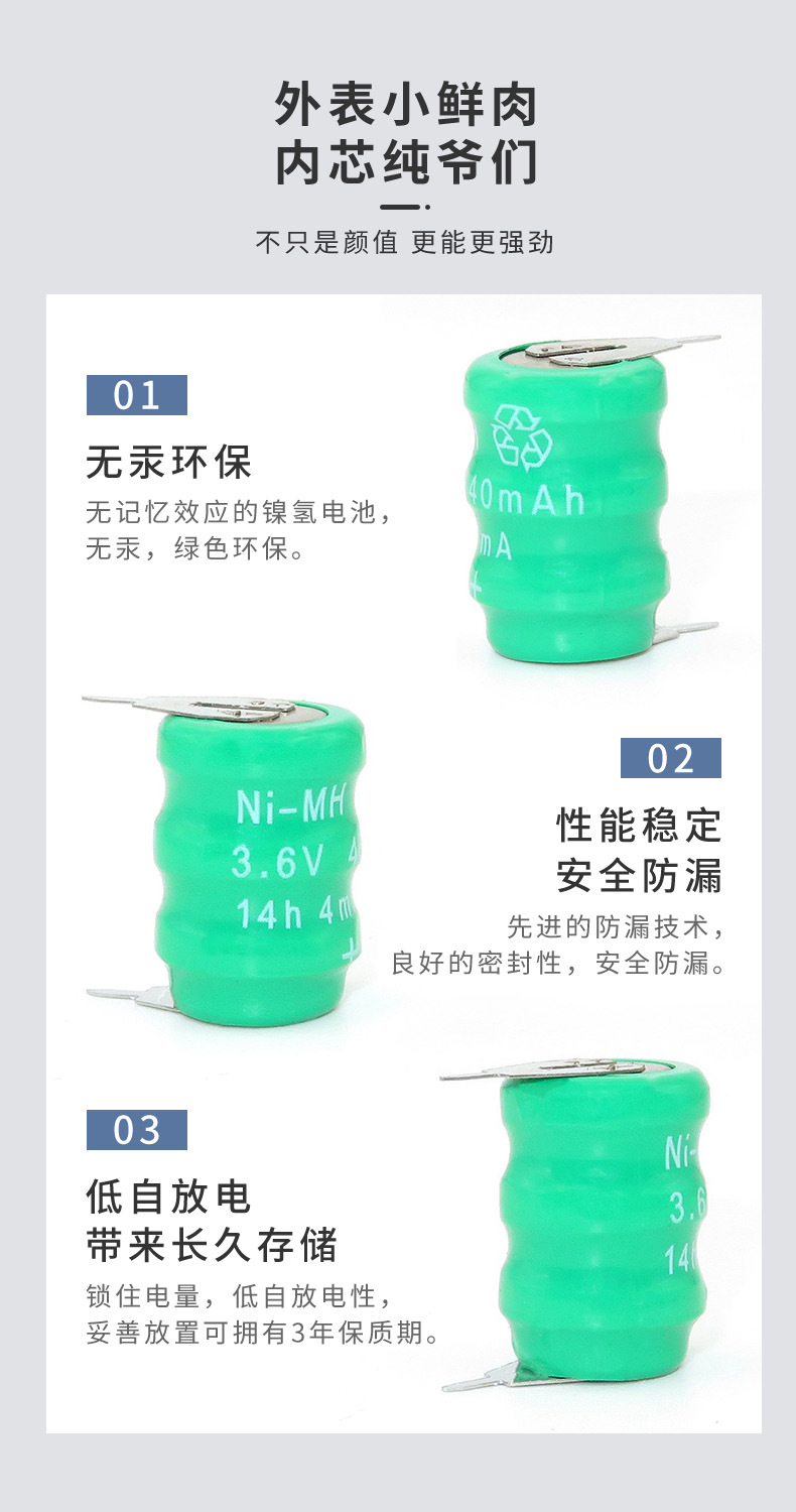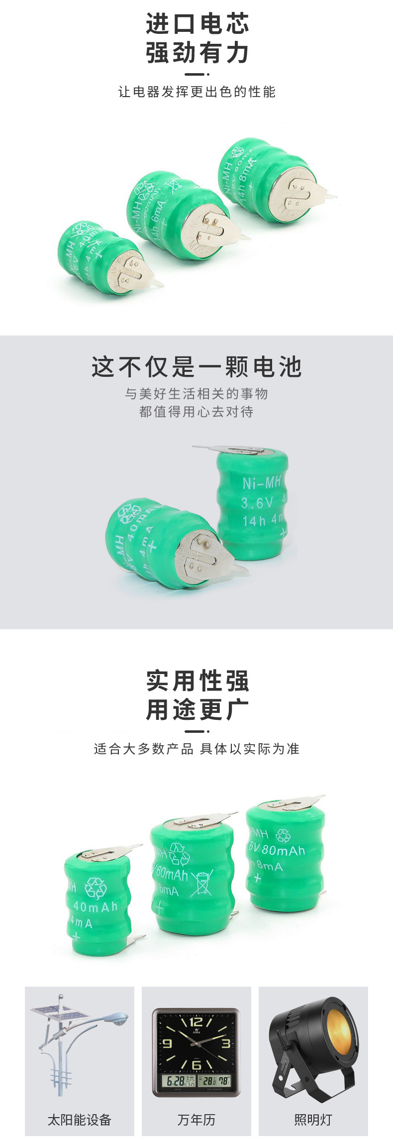汇丰海 扣式镍氢充电电池 NI-MH 3.6V 80mAh 带脚 1个