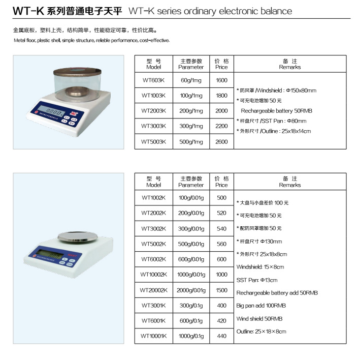 万泰 电子天平 WT2002K 200g/0.01g 1台
