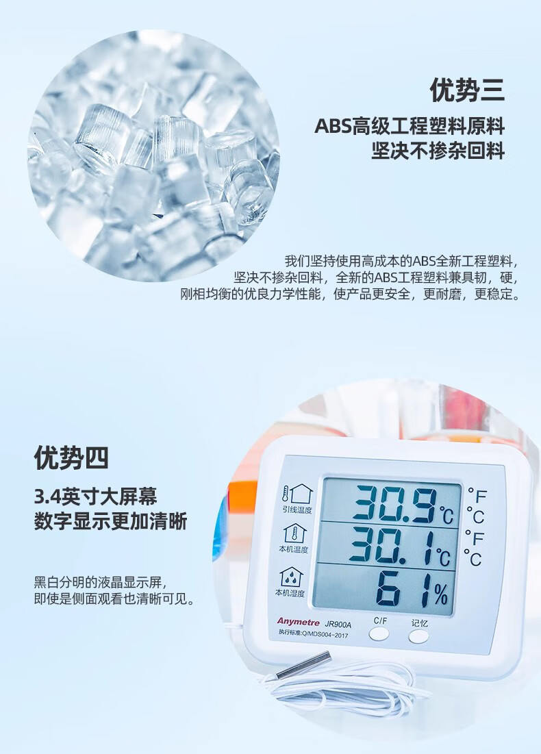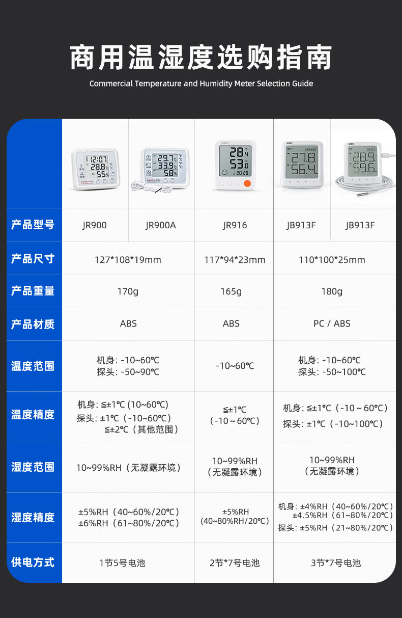 美德时 数显温湿度计 JR900A 127×108×19mm 温度-10~60°C 湿度10~99%RH 1个