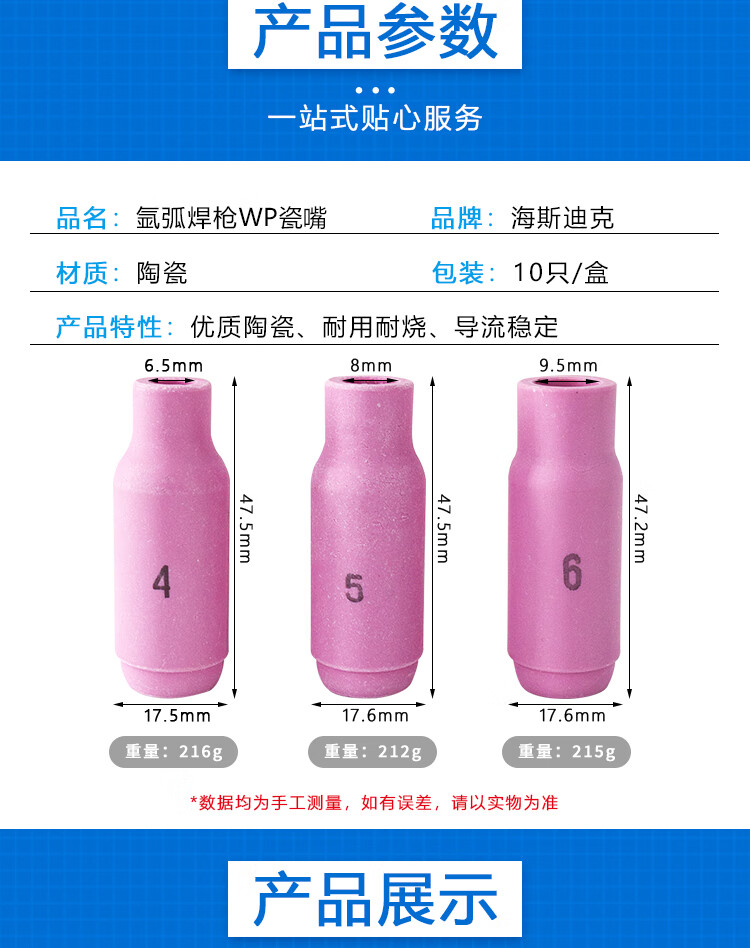 海斯迪克 氩弧焊枪配件 WP5# 瓷嘴 10只 1盒