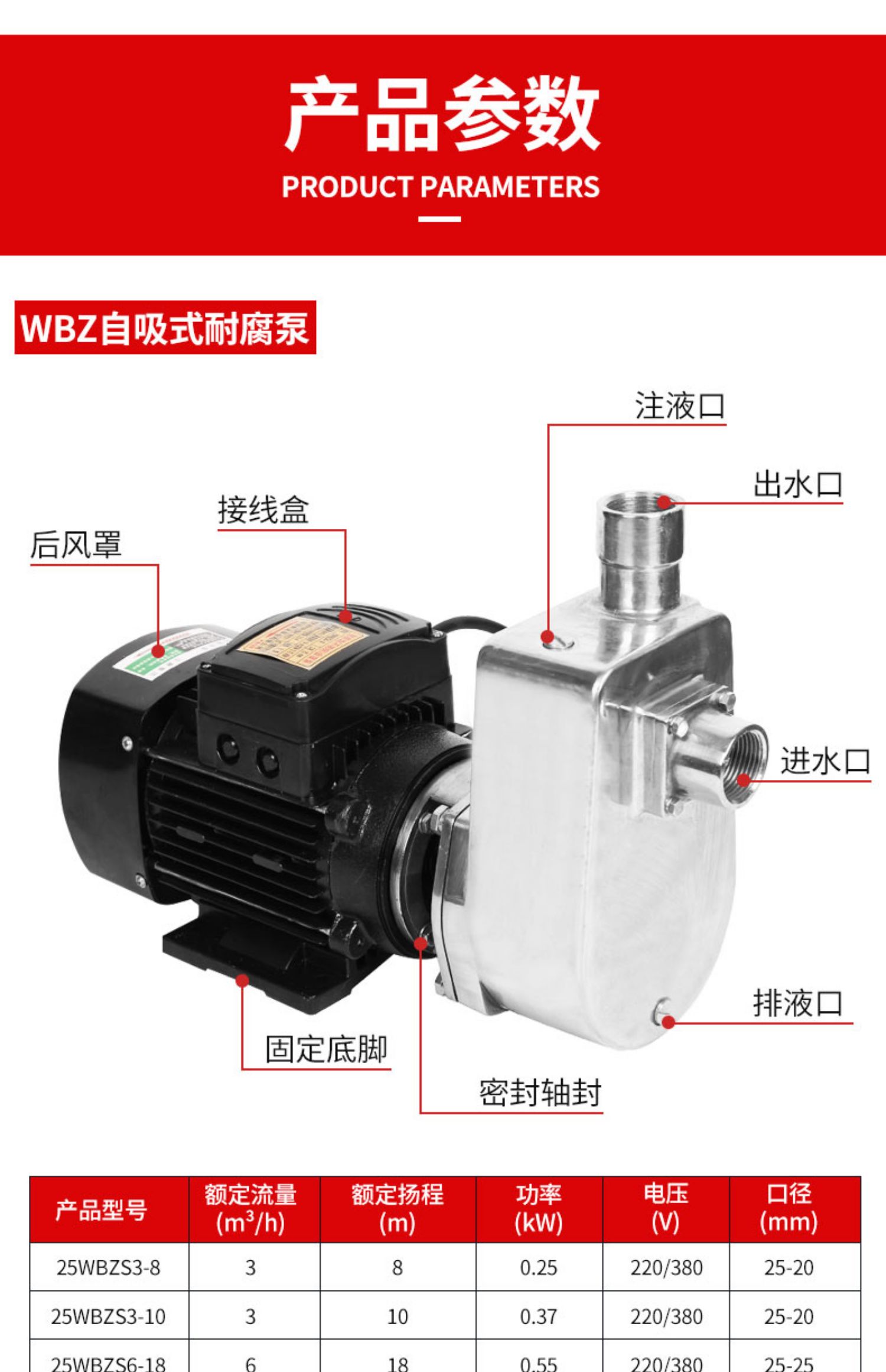 国产通用 耐腐自吸泵 25WBZ3-18 0.55KW 220V 1个