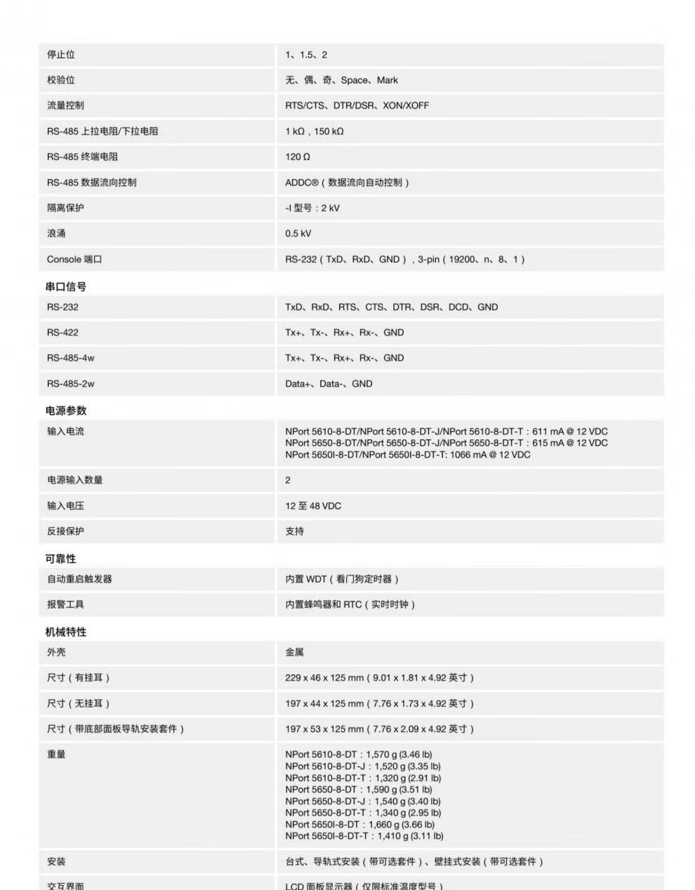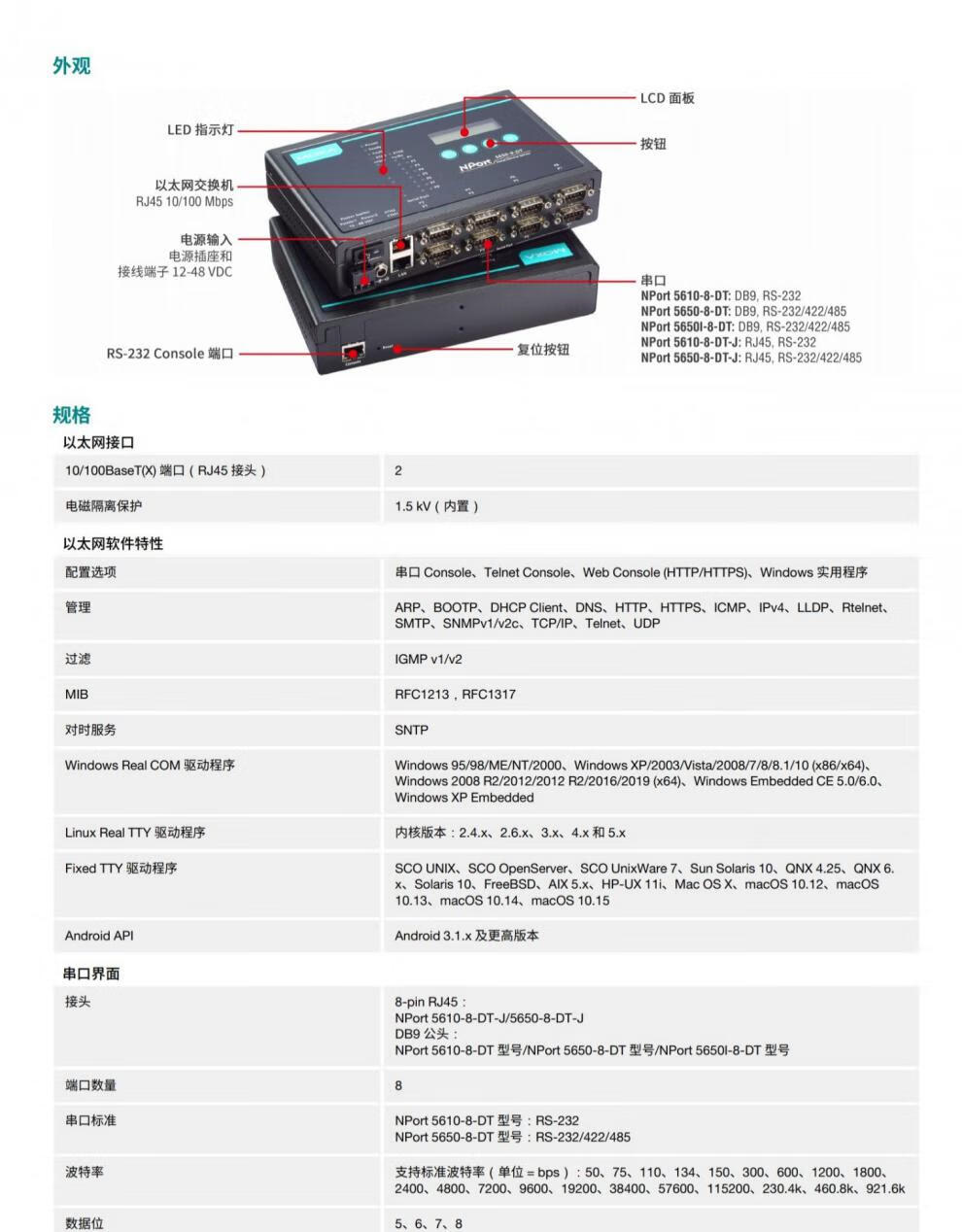 MOXA 8口桌面型串口服务器 NPORT 5650-8-DT 1台