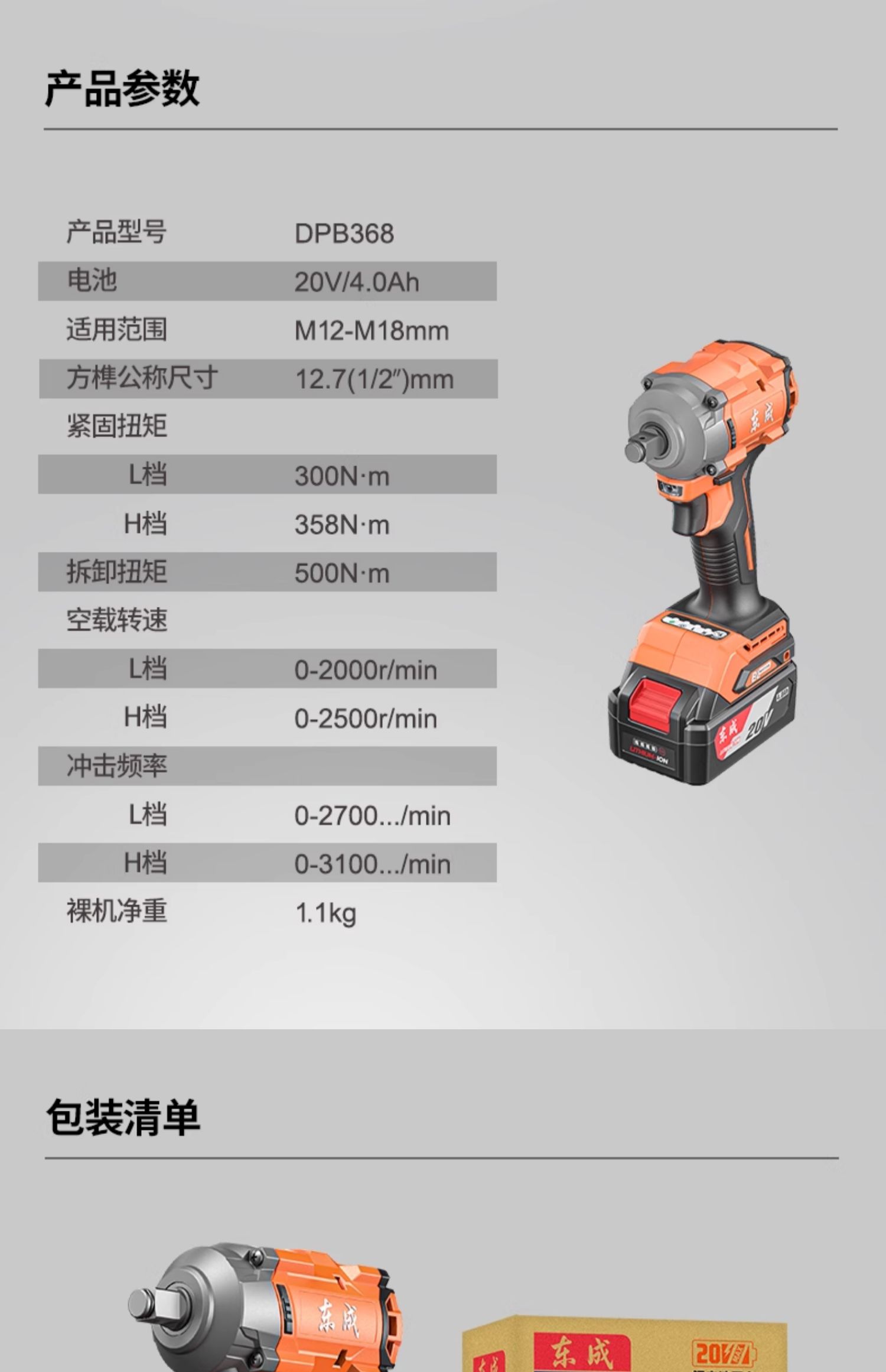 东成 电动冲击扳手 DPB368S 20V/4.0Ah 两电一充(升级套餐) 1把