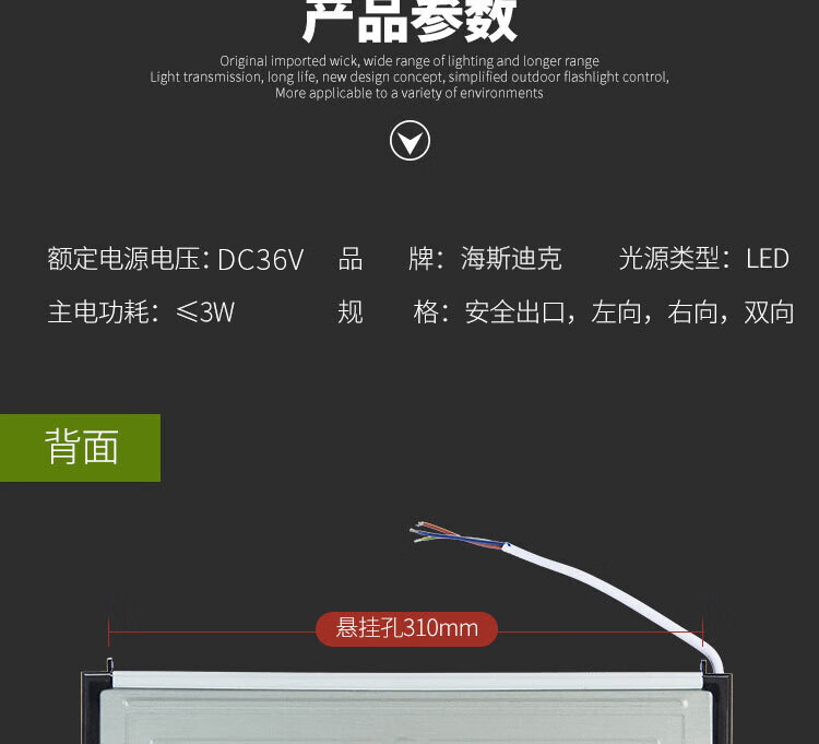 海斯迪克 安全出口指示灯 KA1-2 330*145mm 单面双向 1个