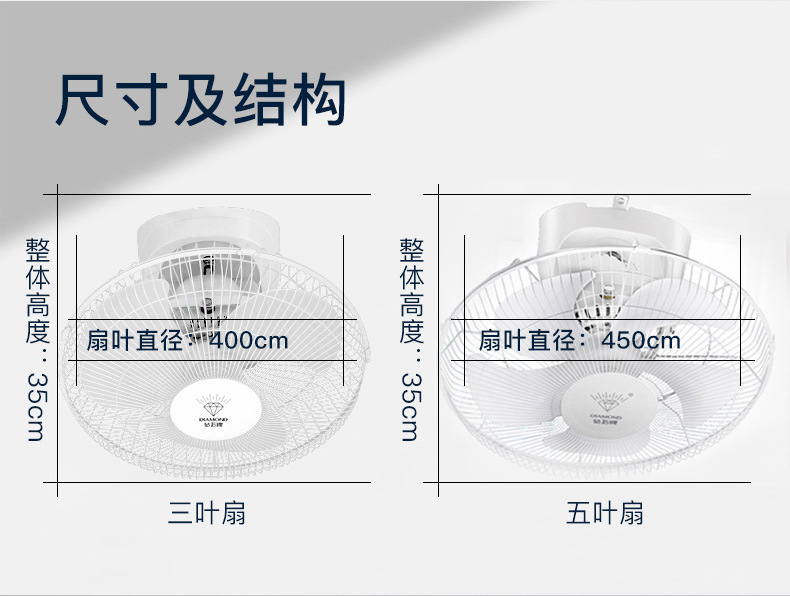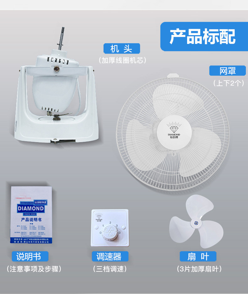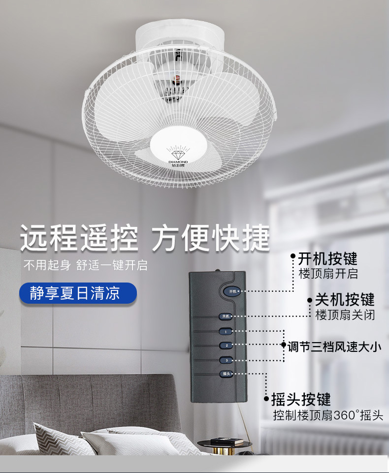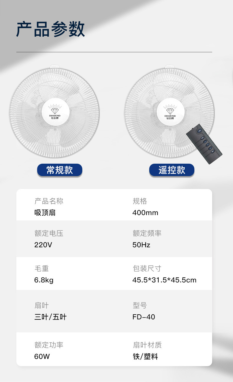 钻石牌 吸顶电风扇 FD-40 16吋塑料五叶 白色 1台