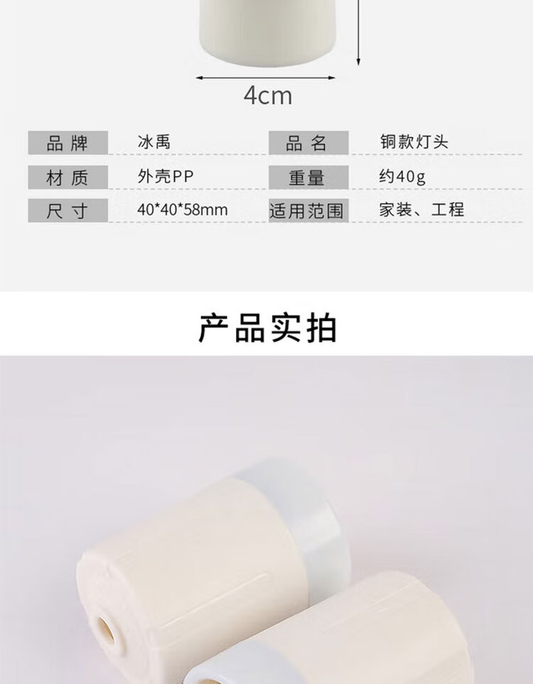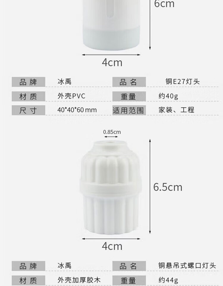 冰禹 悬吊式灯座 KN2-1 E27 pvc米色阻燃带陶瓷款 1个