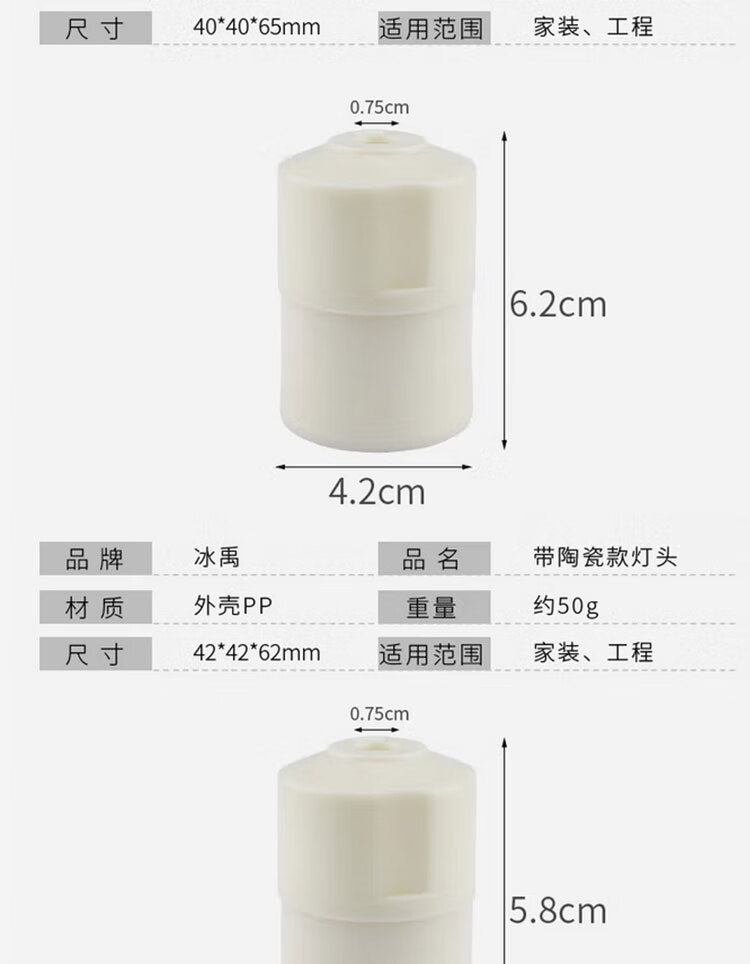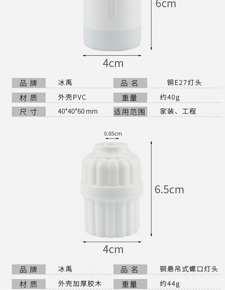 冰禹 悬吊式灯座 KN2-2 E27 pp米色阻燃铜款 1个