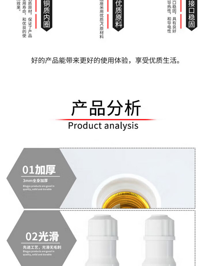 冰禹 悬吊式灯座 KN2-6 E27 (铜+PC)灯座罗口 1个