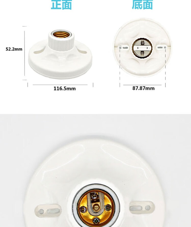 冰禹 吸顶平灯座 KN2-8 E27 阻燃耐高温大底座 1个