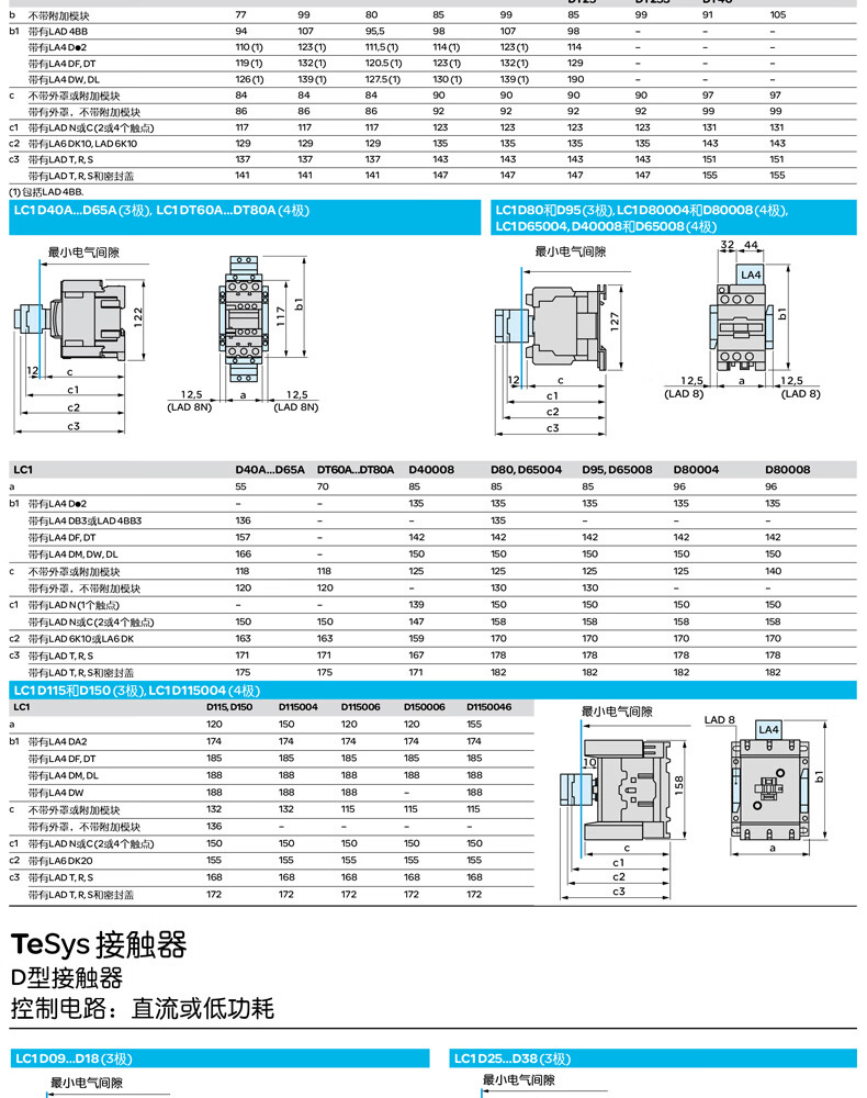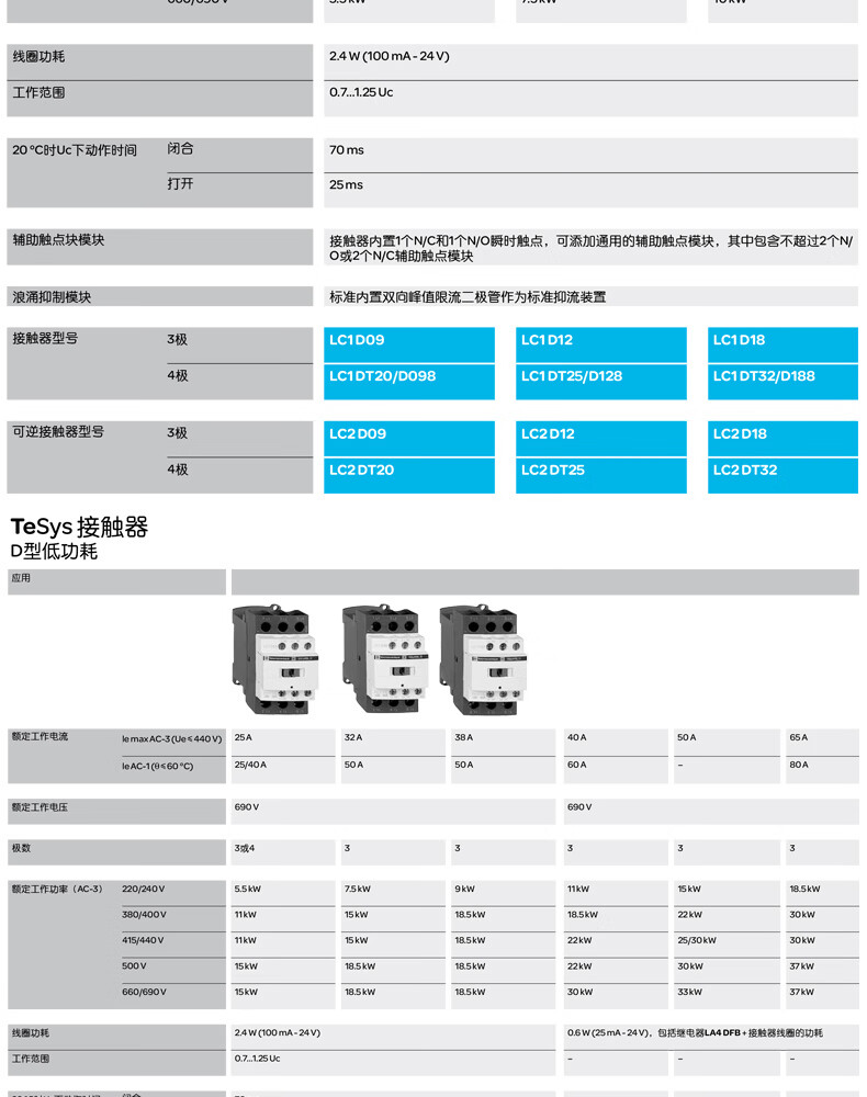 施耐德电气 D系列三极交流接触器 LC1D093BL 9A 3P 1NO+1NC 1个