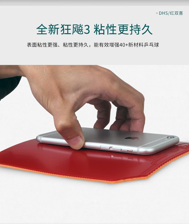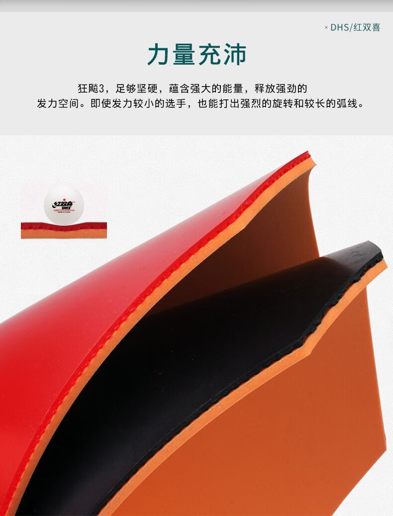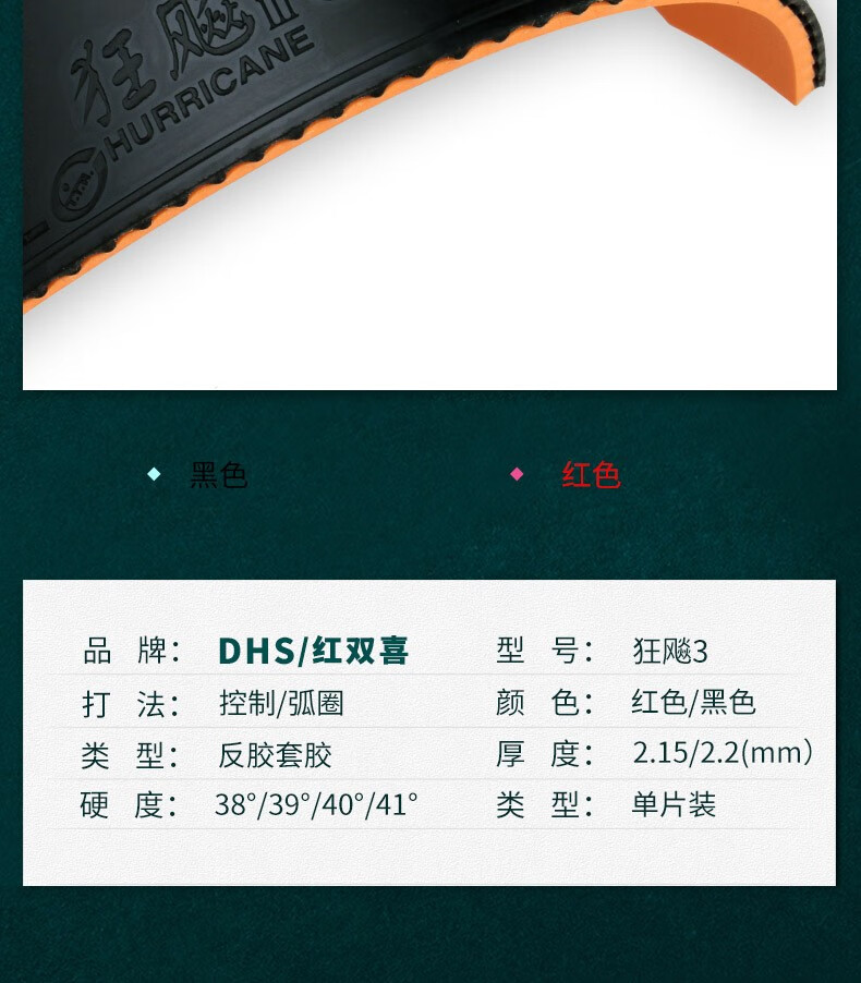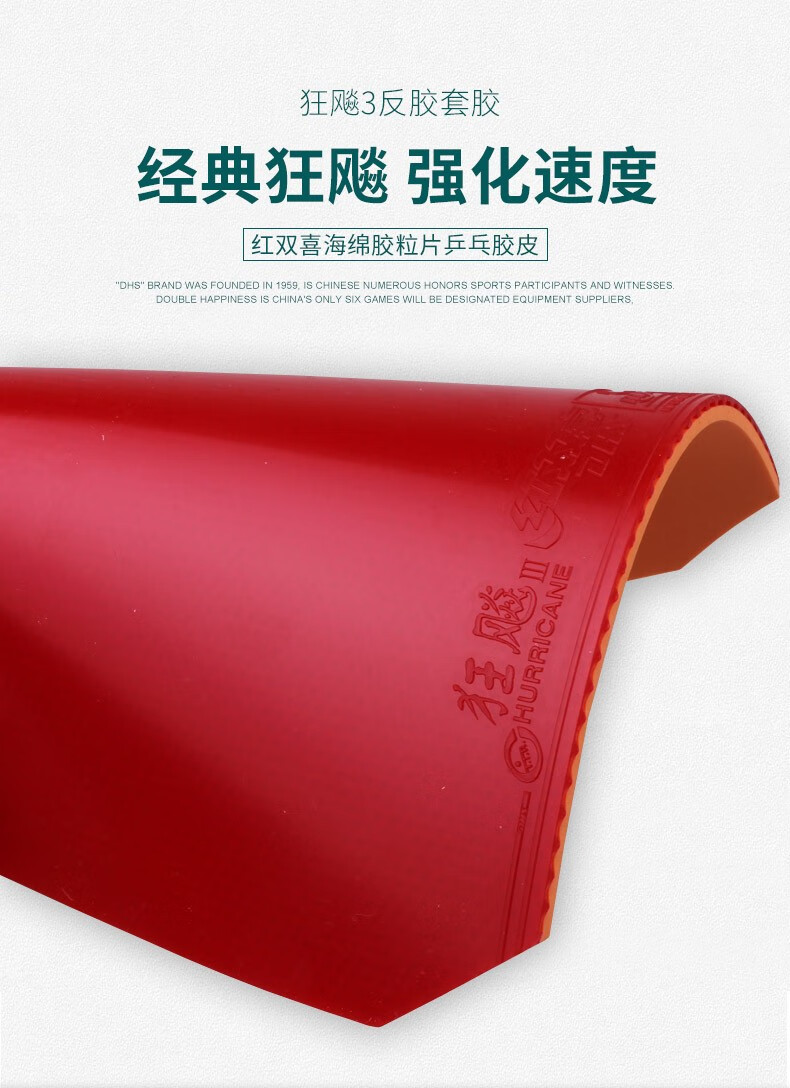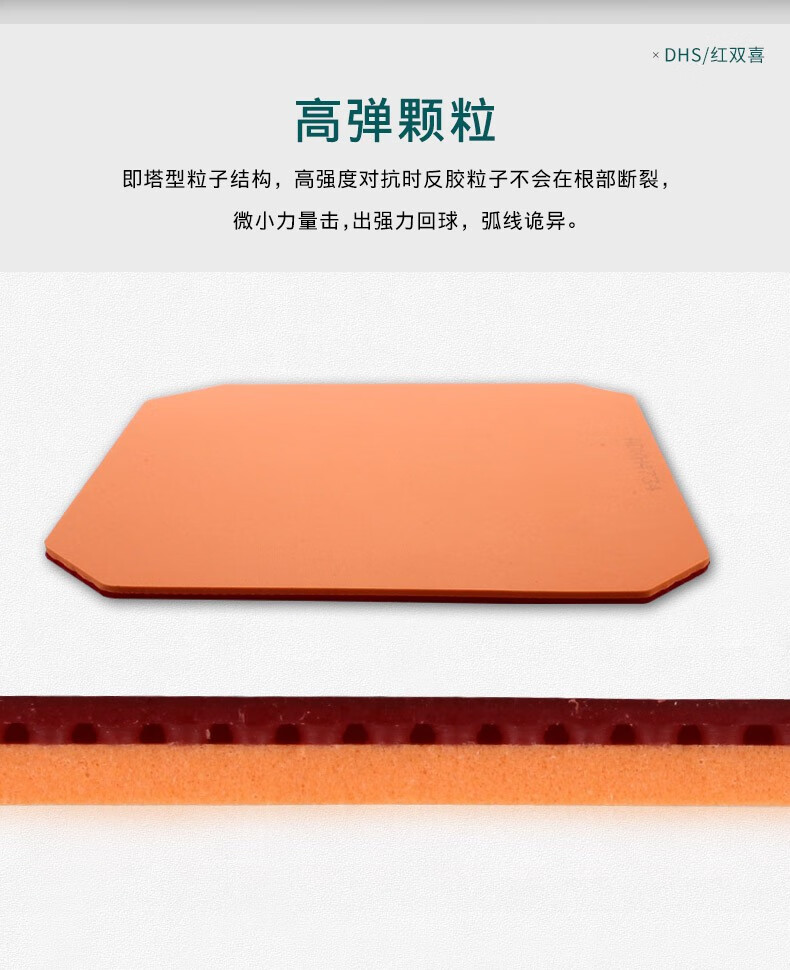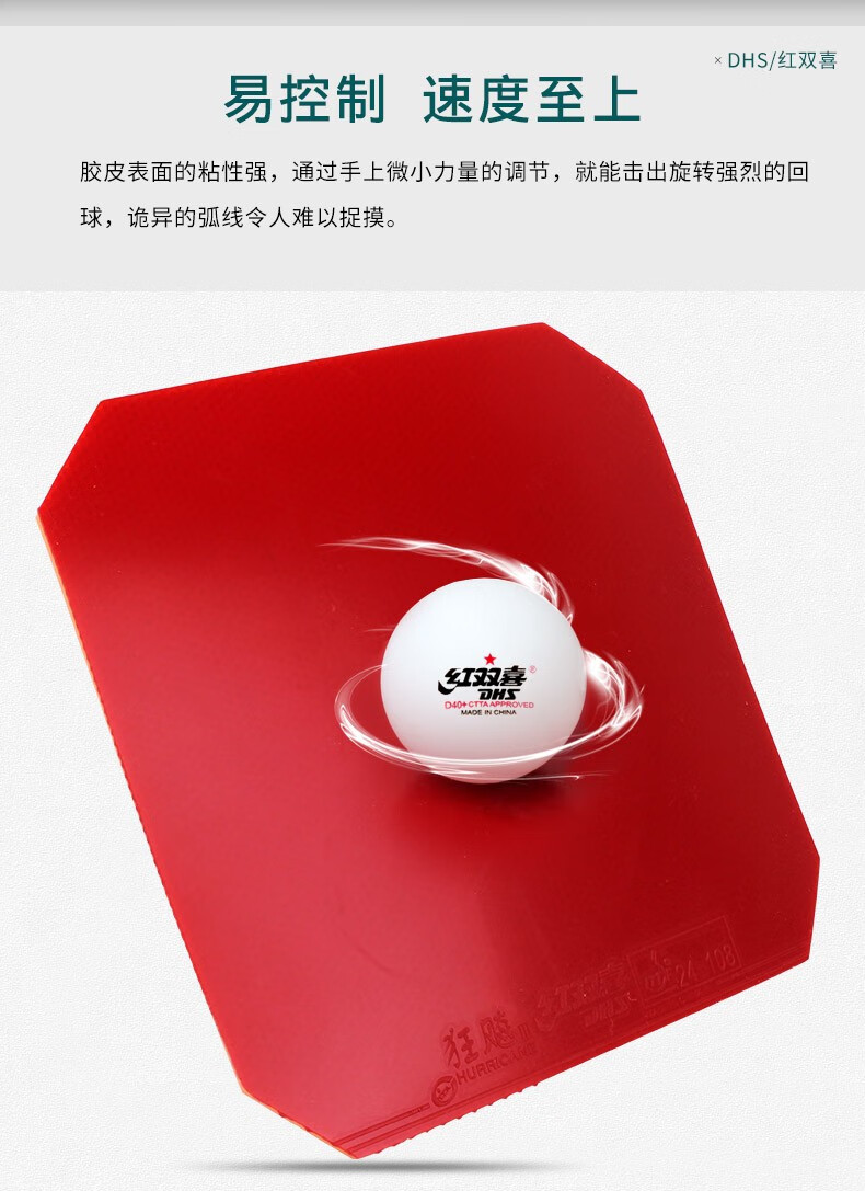 红双喜 乒乓球拍胶皮 【硬39°-厚2.2】 红色 1张