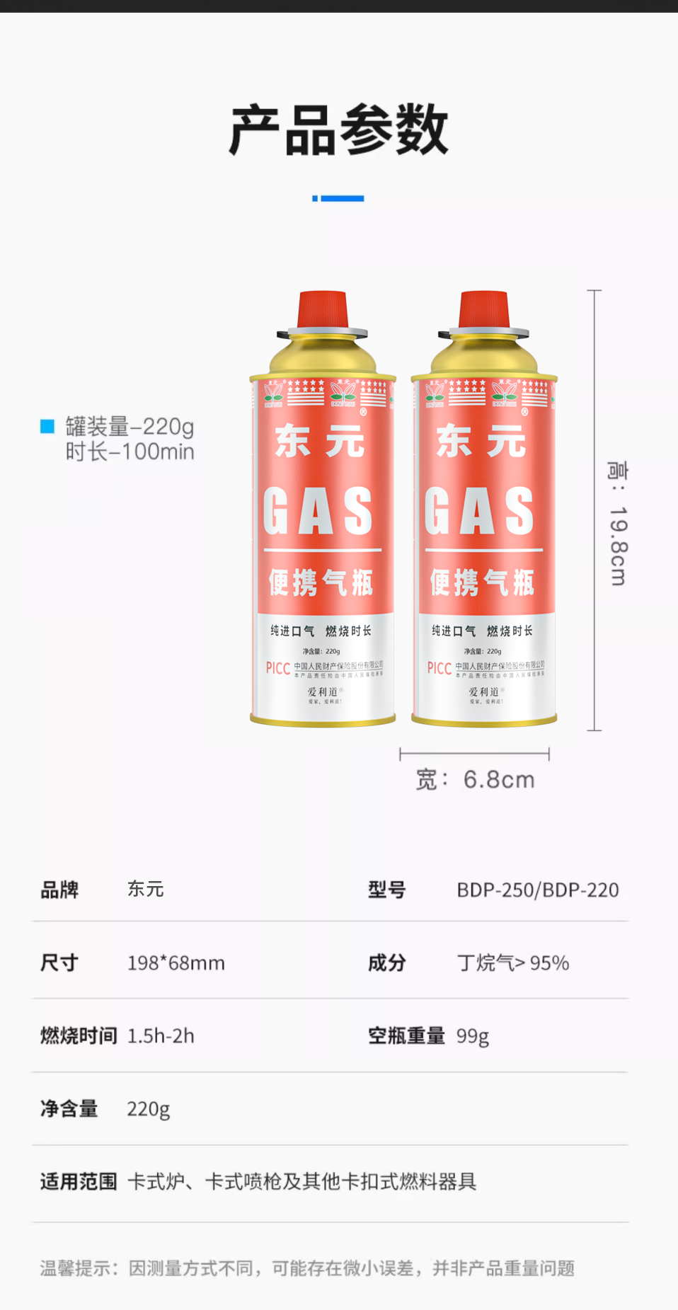 东元 爱利道卡式燃气瓶 220g 1瓶