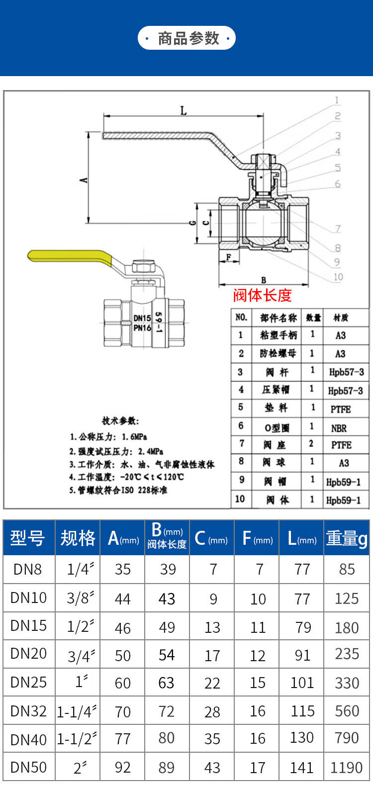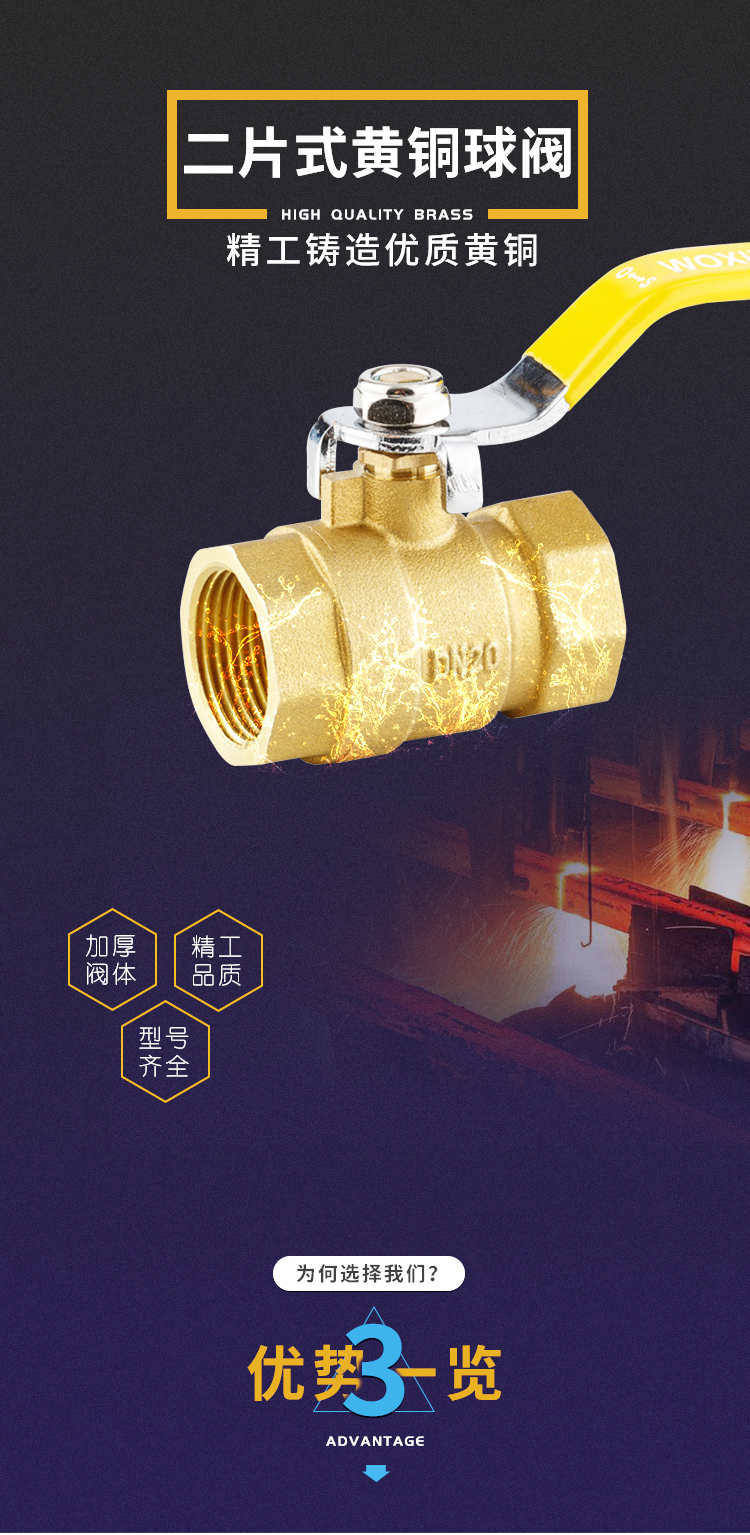 海斯迪克 黄铜两片式双内丝球阀 KL7-5 中型 DN25 1寸 1个