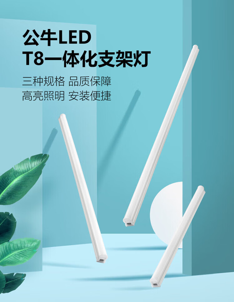 公牛 T8一体化支架灯 MZ-B010A-AD 10W 白光 1个
