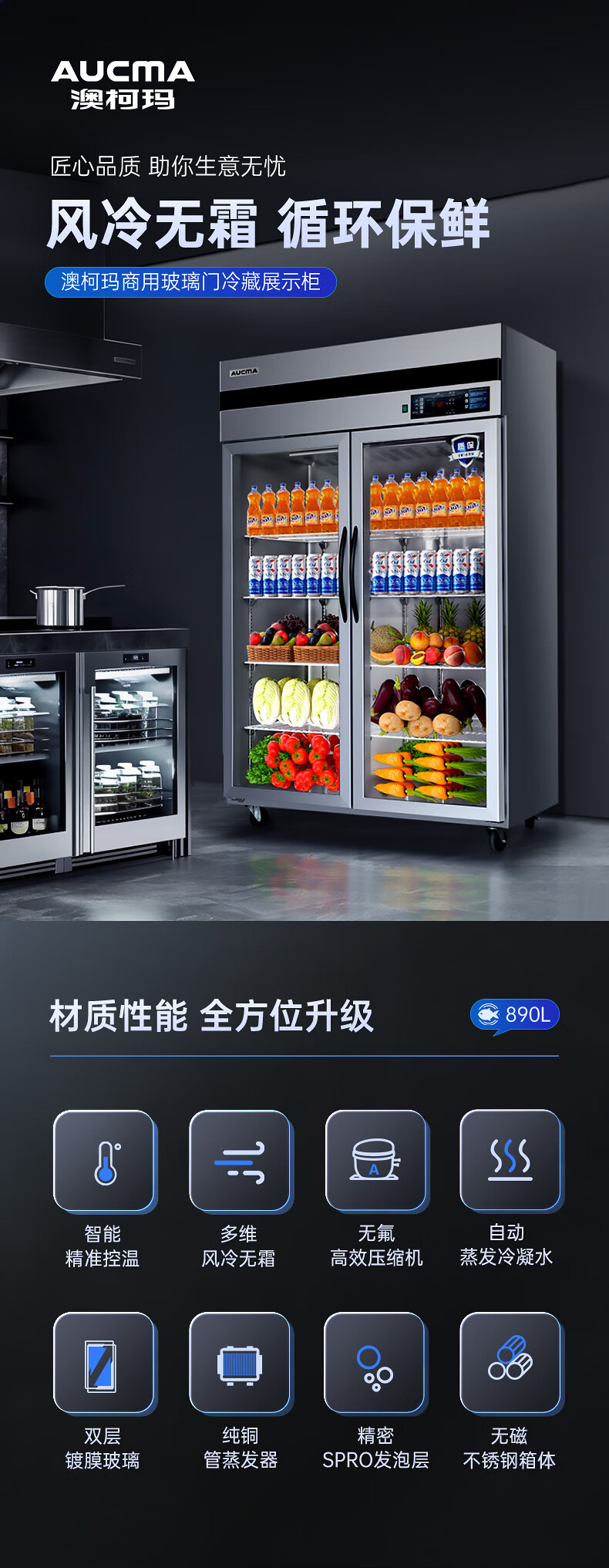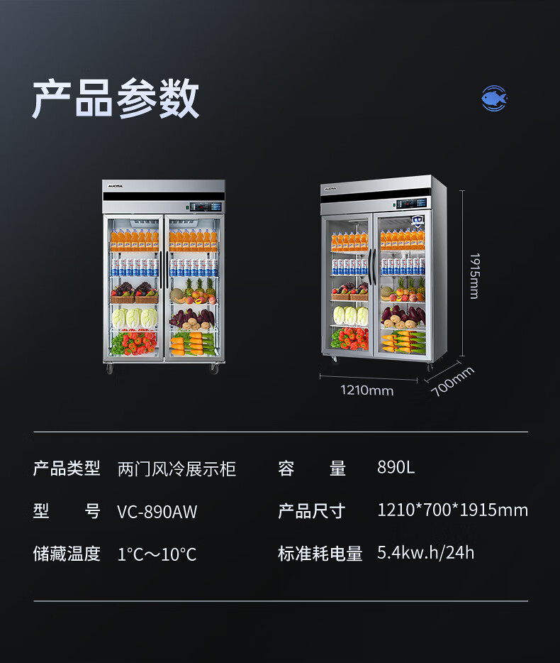 澳柯玛 冷藏展示柜 VC-890AW 双门 890L 1台