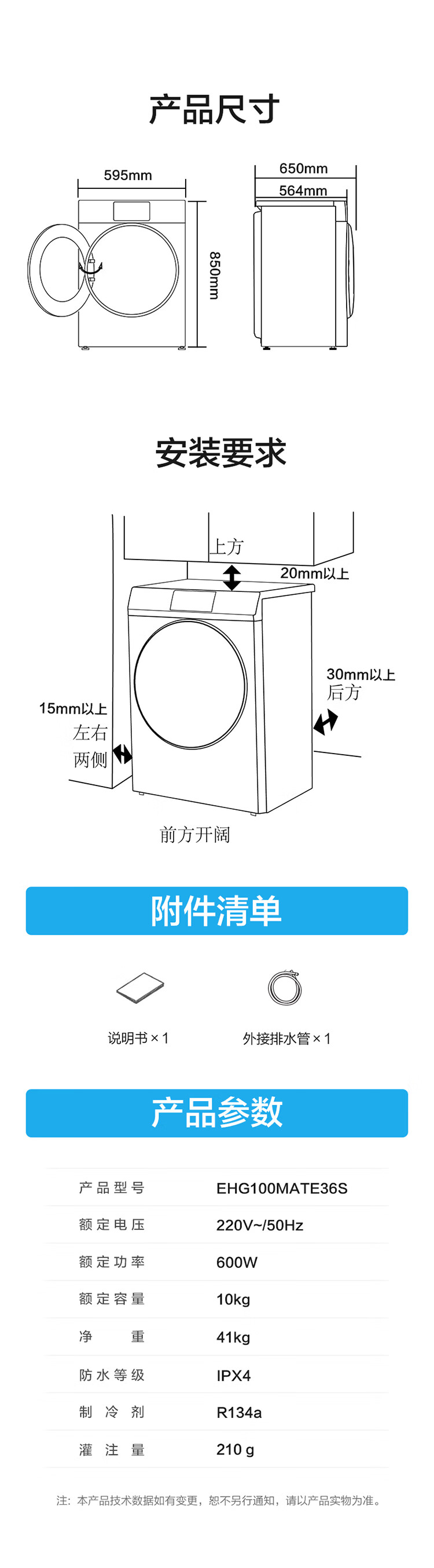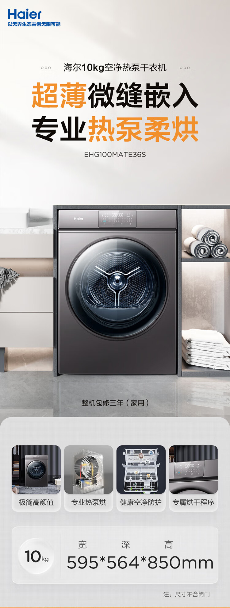 海尔 热泵干衣机 EHG100MATE36S 10kg 1台