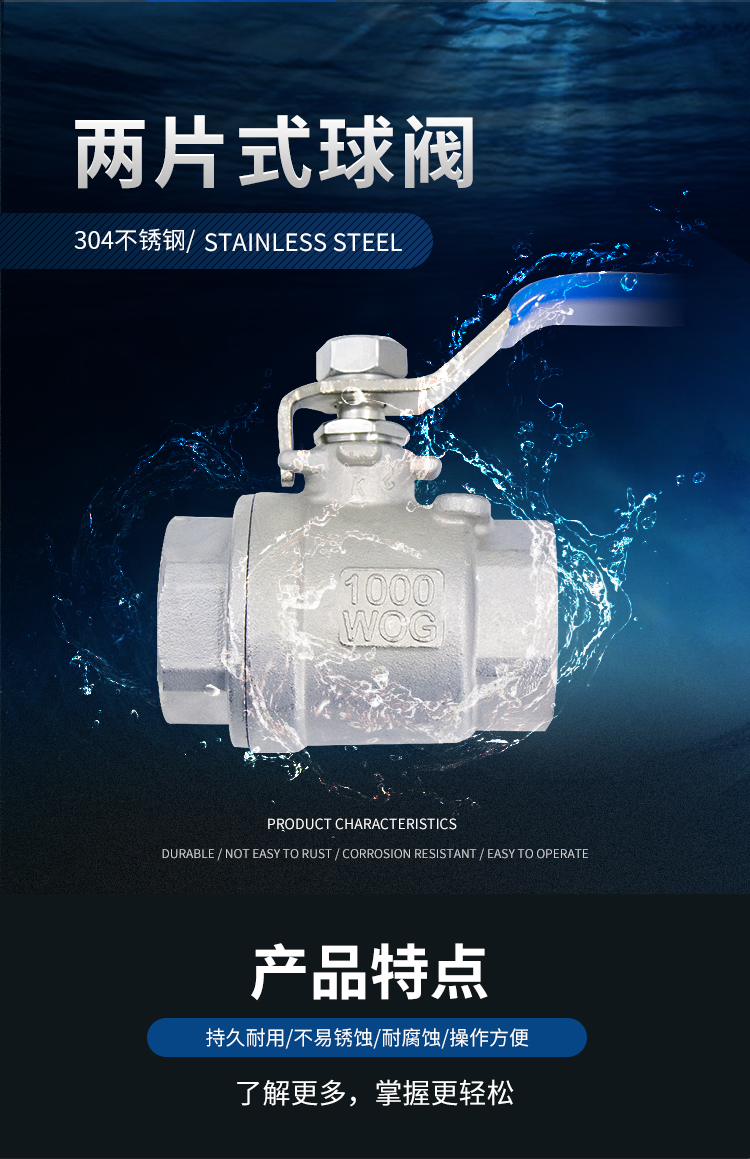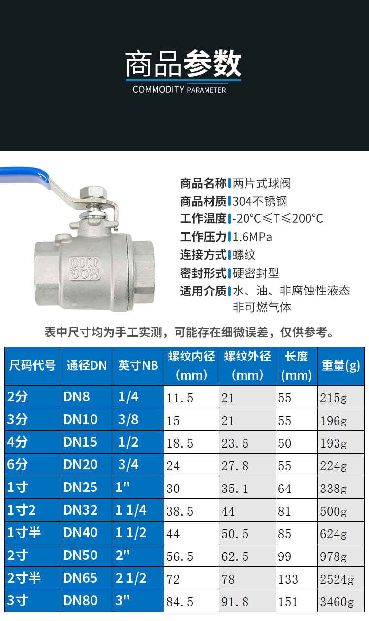 • 商品名称:海斯迪克 304不锈钢两片式内丝球阀