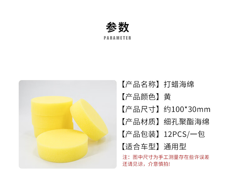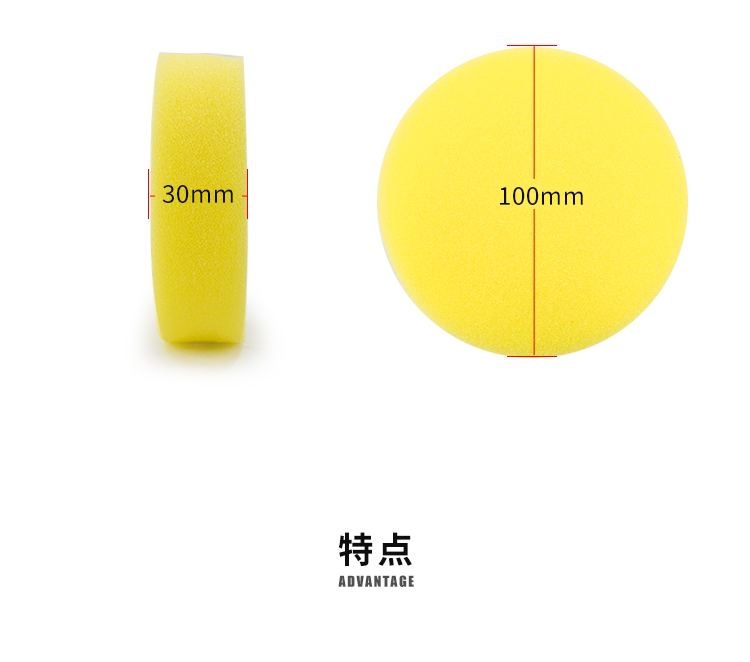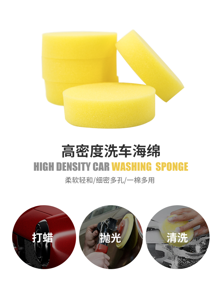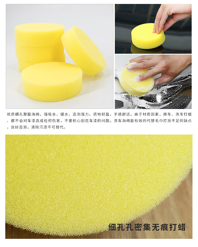 海斯迪克 圆形打蜡海绵 HK-809 黄色100*30mm 1个