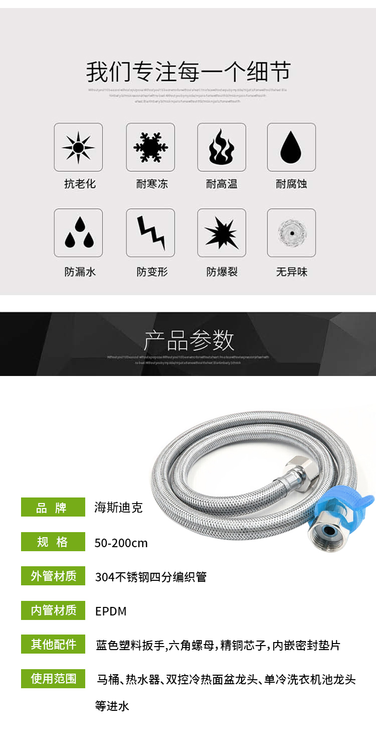 • 商品名称:海斯迪克 304不锈钢编织软管