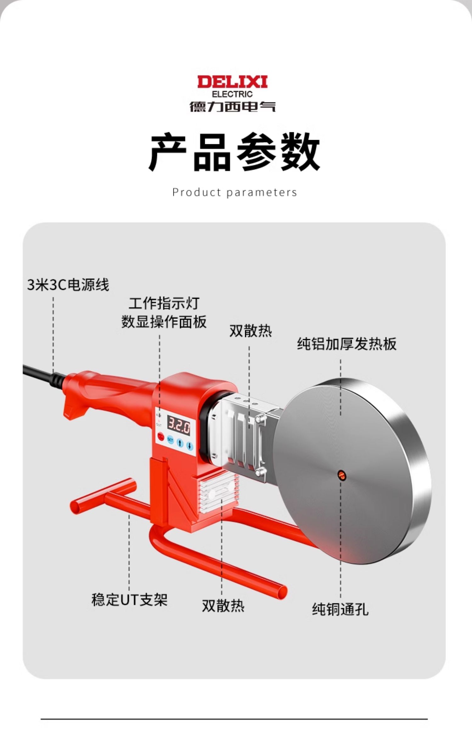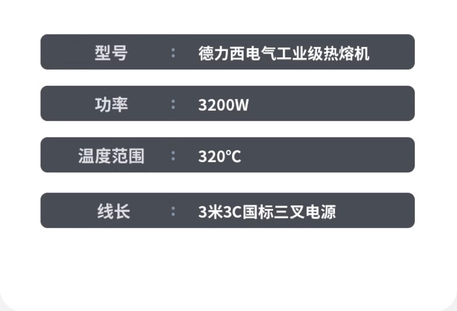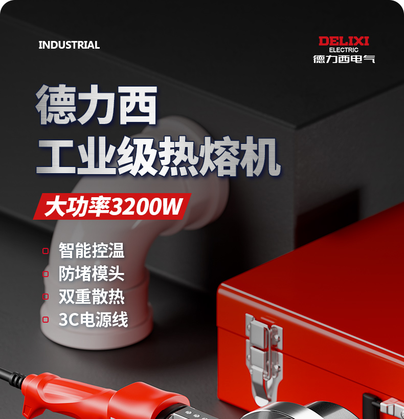 德力西电气 工业级热熔器 3200W 【数显调温加强款】 +3组黑金防堵模头+加固UT支架+配件+铁箱 1个