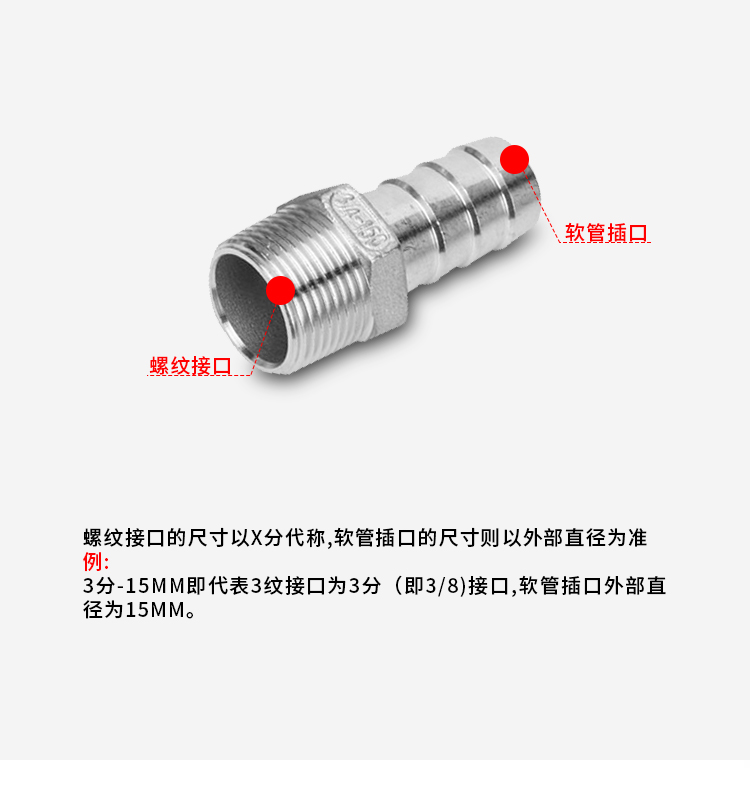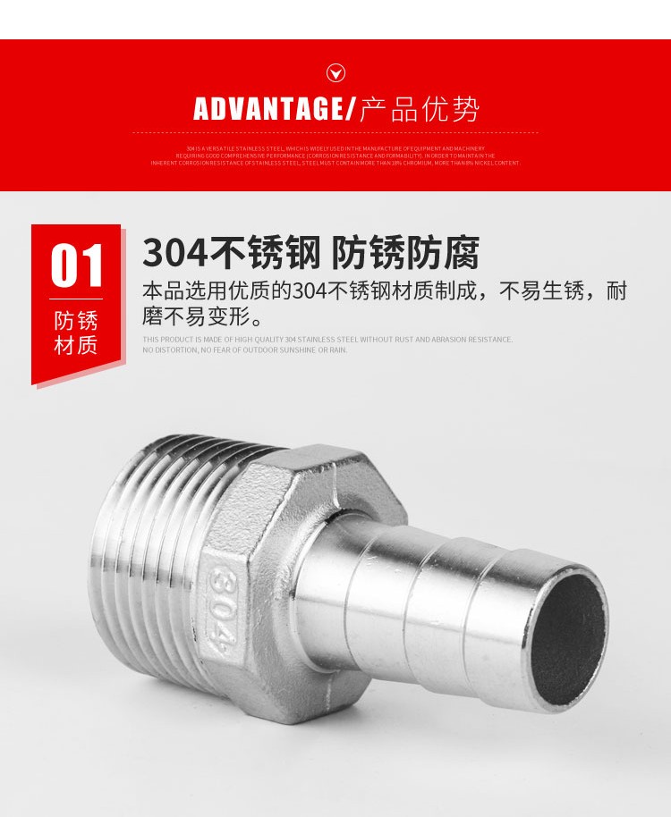 海斯迪克 304不锈钢外丝宝塔接头 KL19-26 3/4×12mm 1个