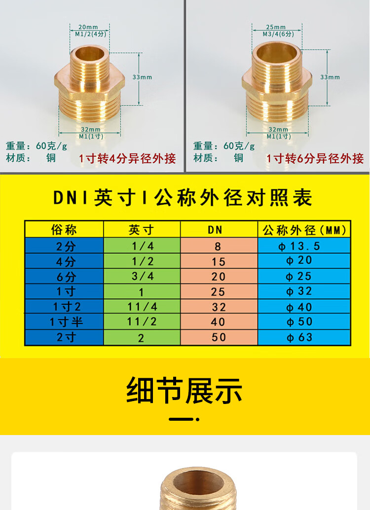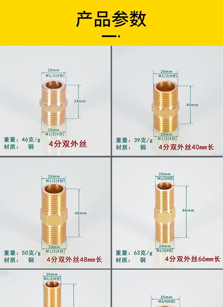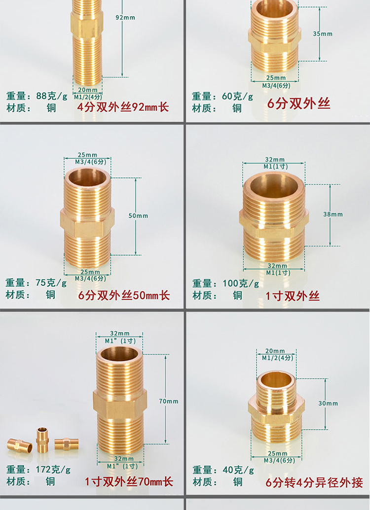 • 商品名称:海斯迪克 铜双外丝接头配件