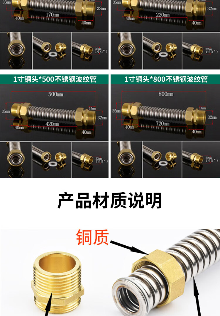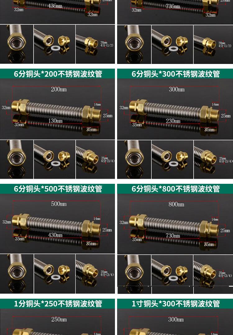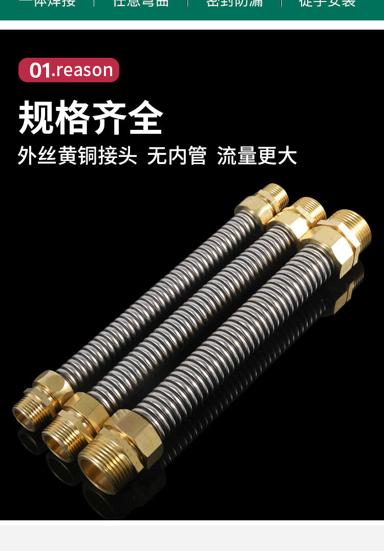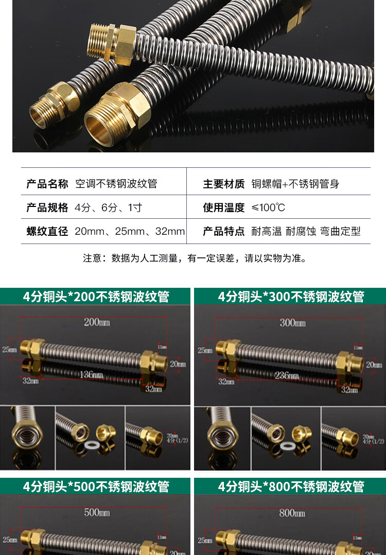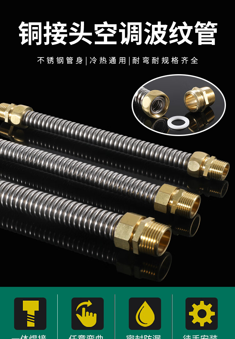 海斯迪克 304不锈钢双外丝中央空调波纹管 KL22-5 大体6分DN20 20cm 1根