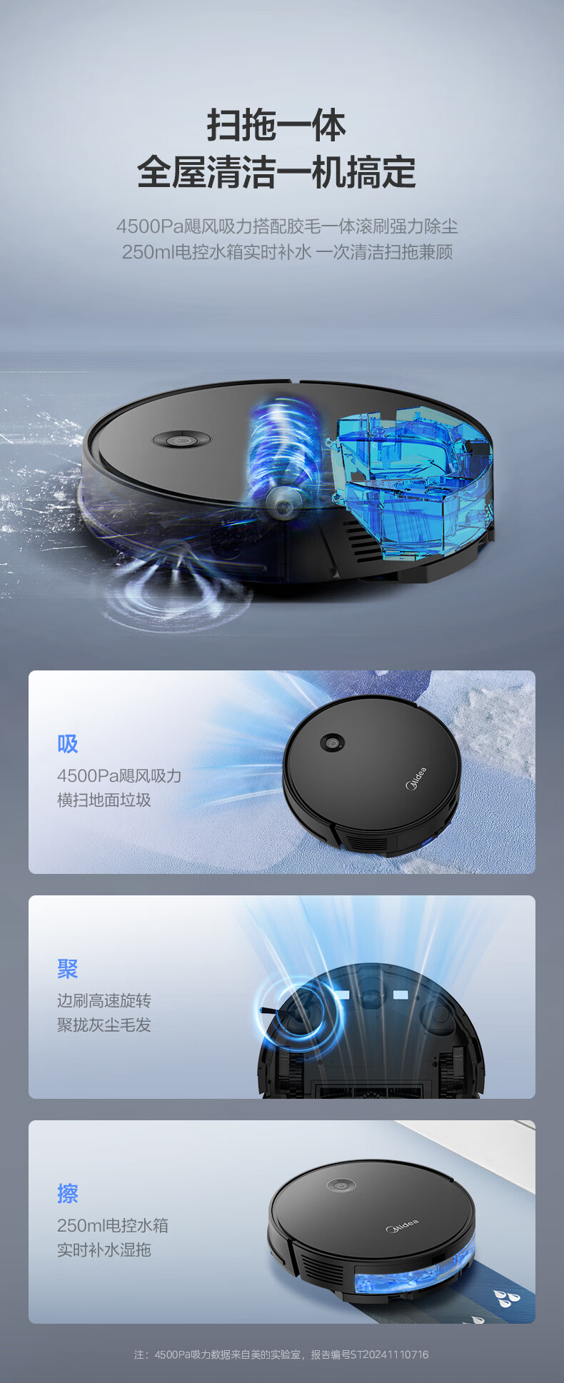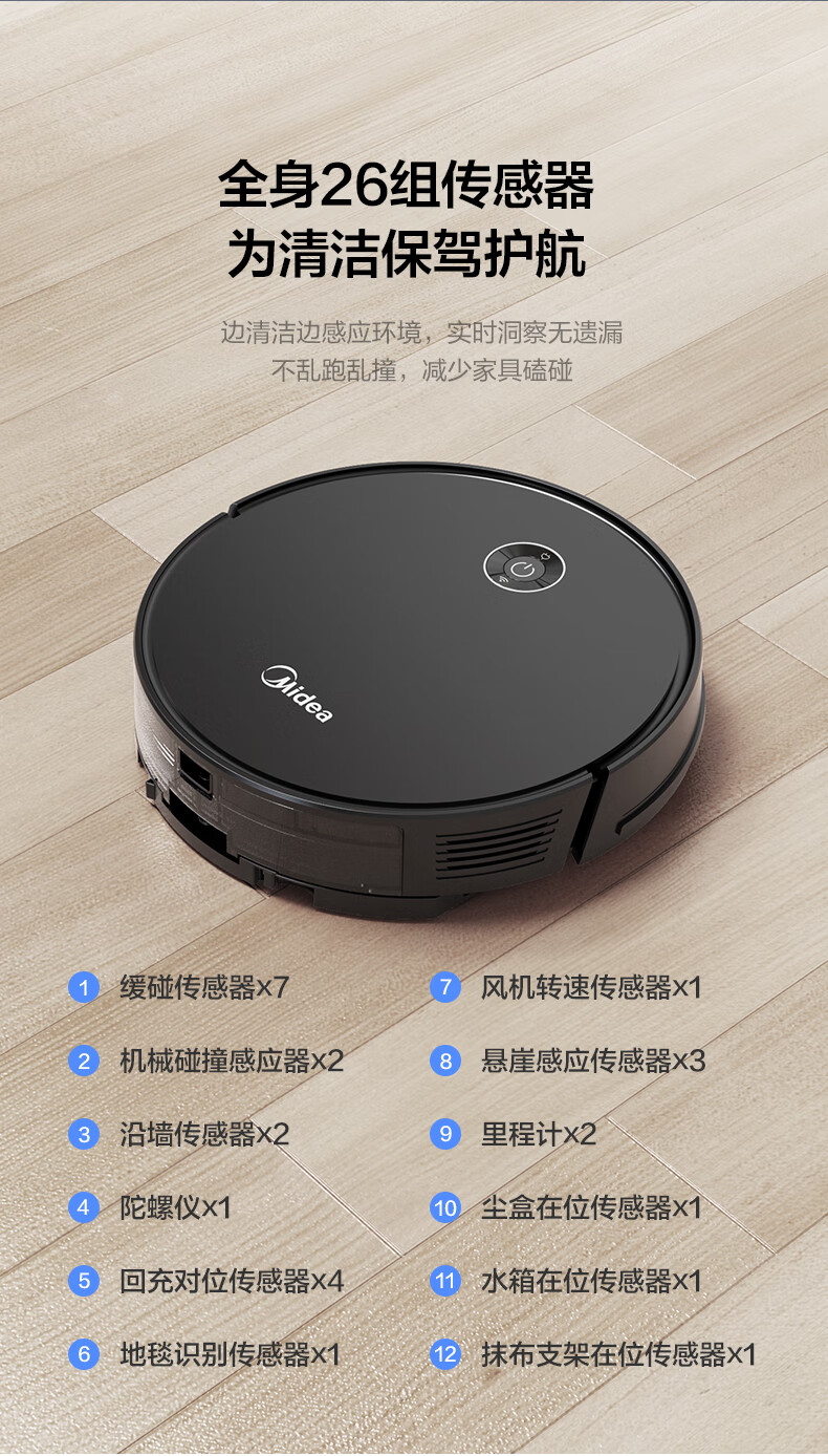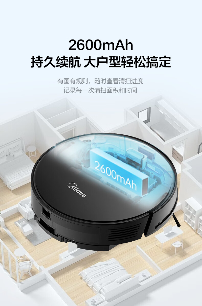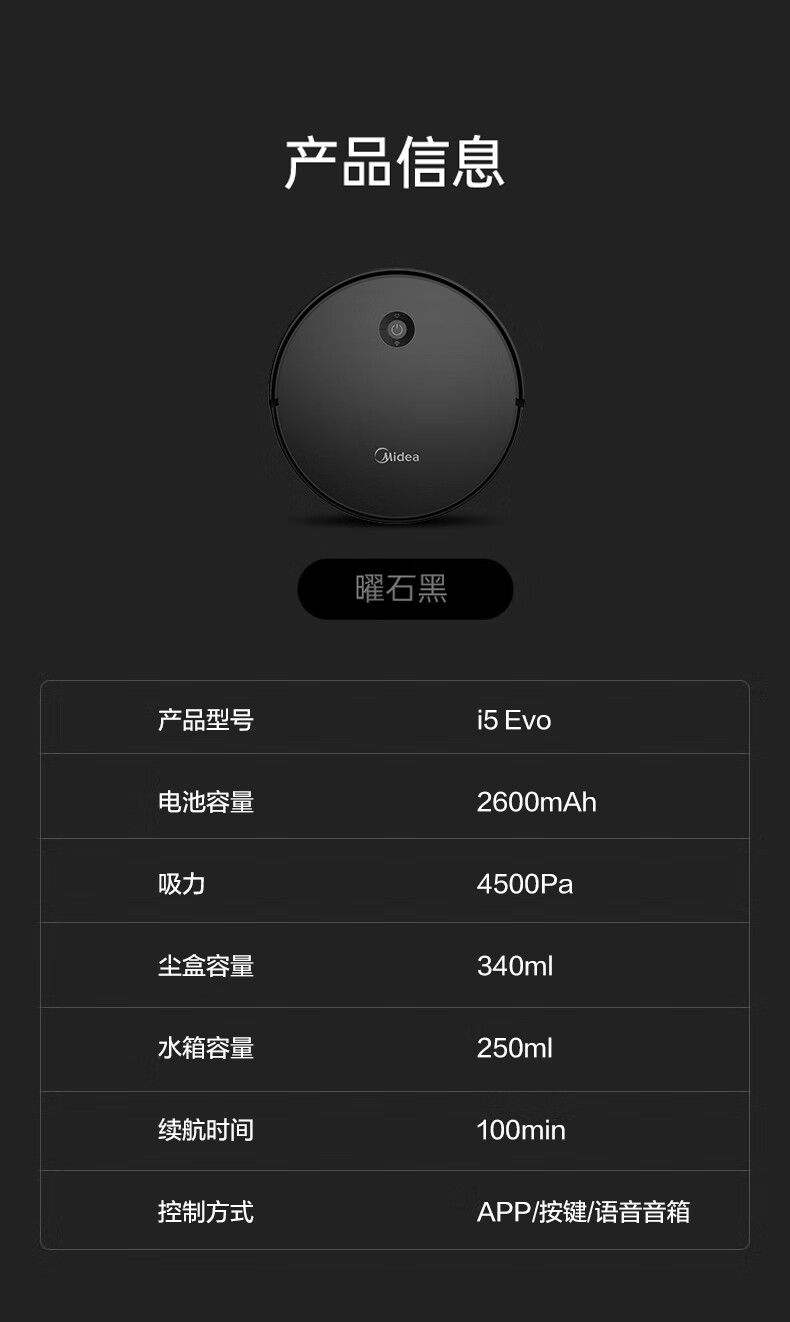 美的 大吸力扫地机器人 4500Pa大吸力 黑色款i5 EVO 1个
