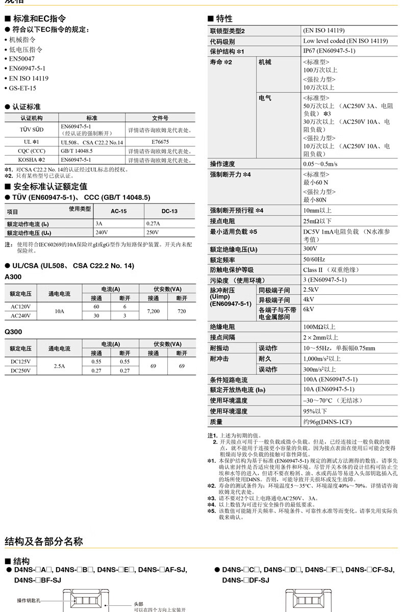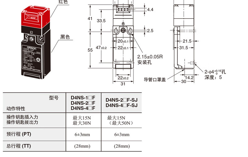 欧姆龙 安全门开关 D4NS-1AF 1常开1常闭 1个