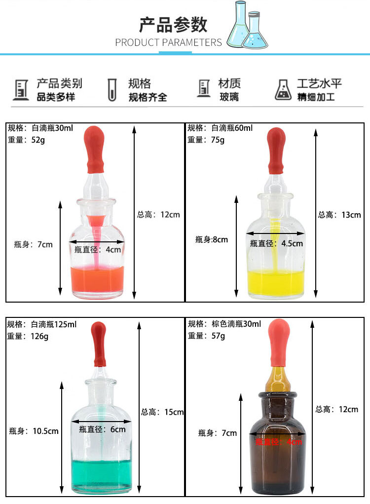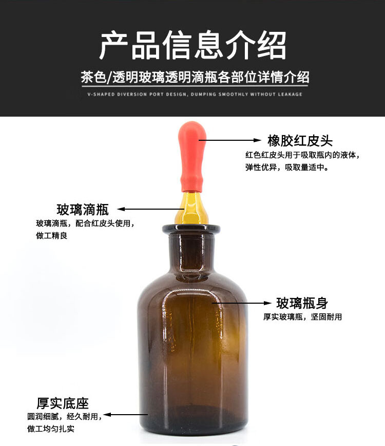 海斯迪克 胶头滴瓶 KY12-6 高硼硅玻璃 茶色 125ml 1个
